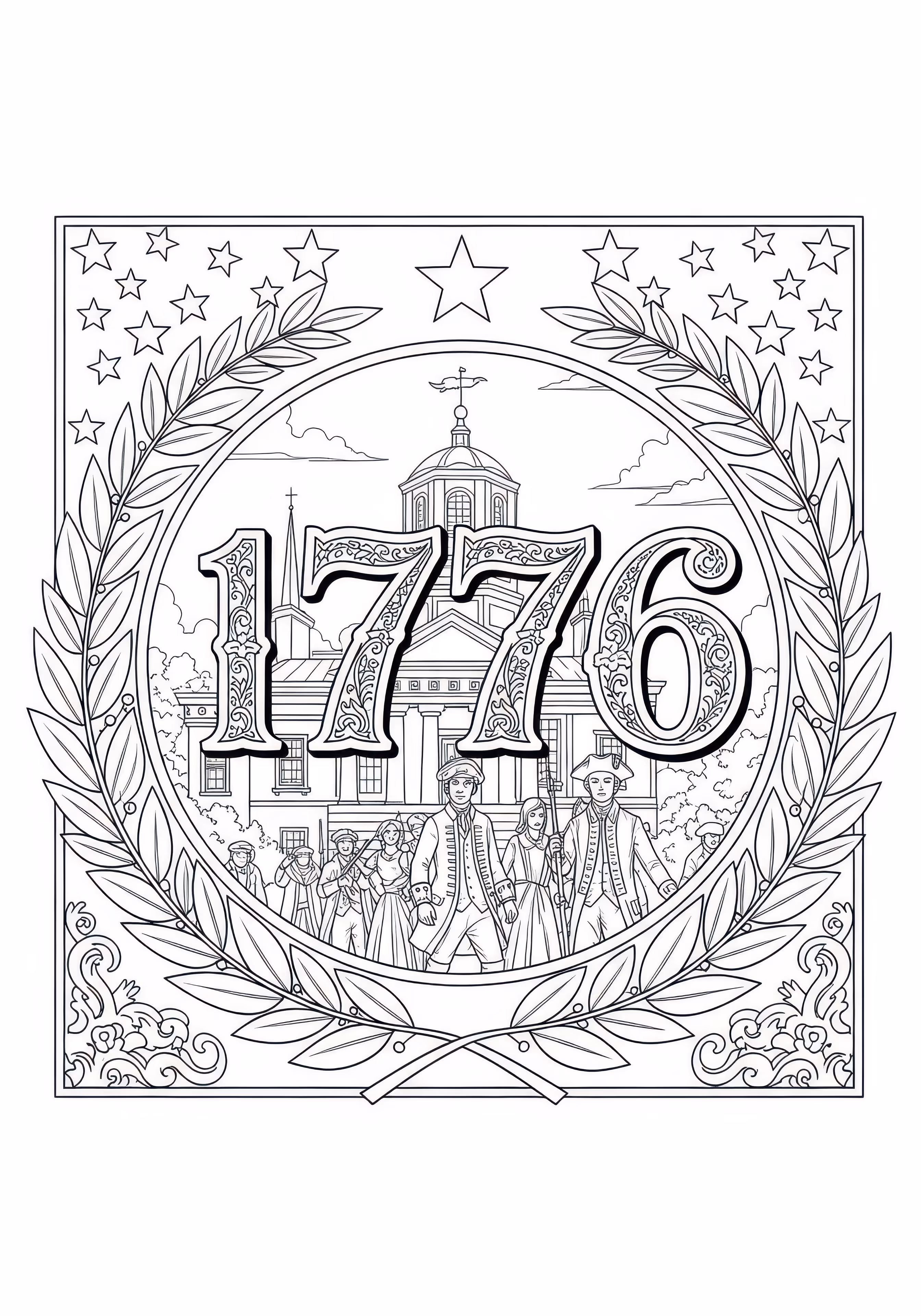 1776 Year is a free printable coloring page designed for tweens in historical style. This hard difficulty coloring sheet features medium outlines, perfect for young artists.