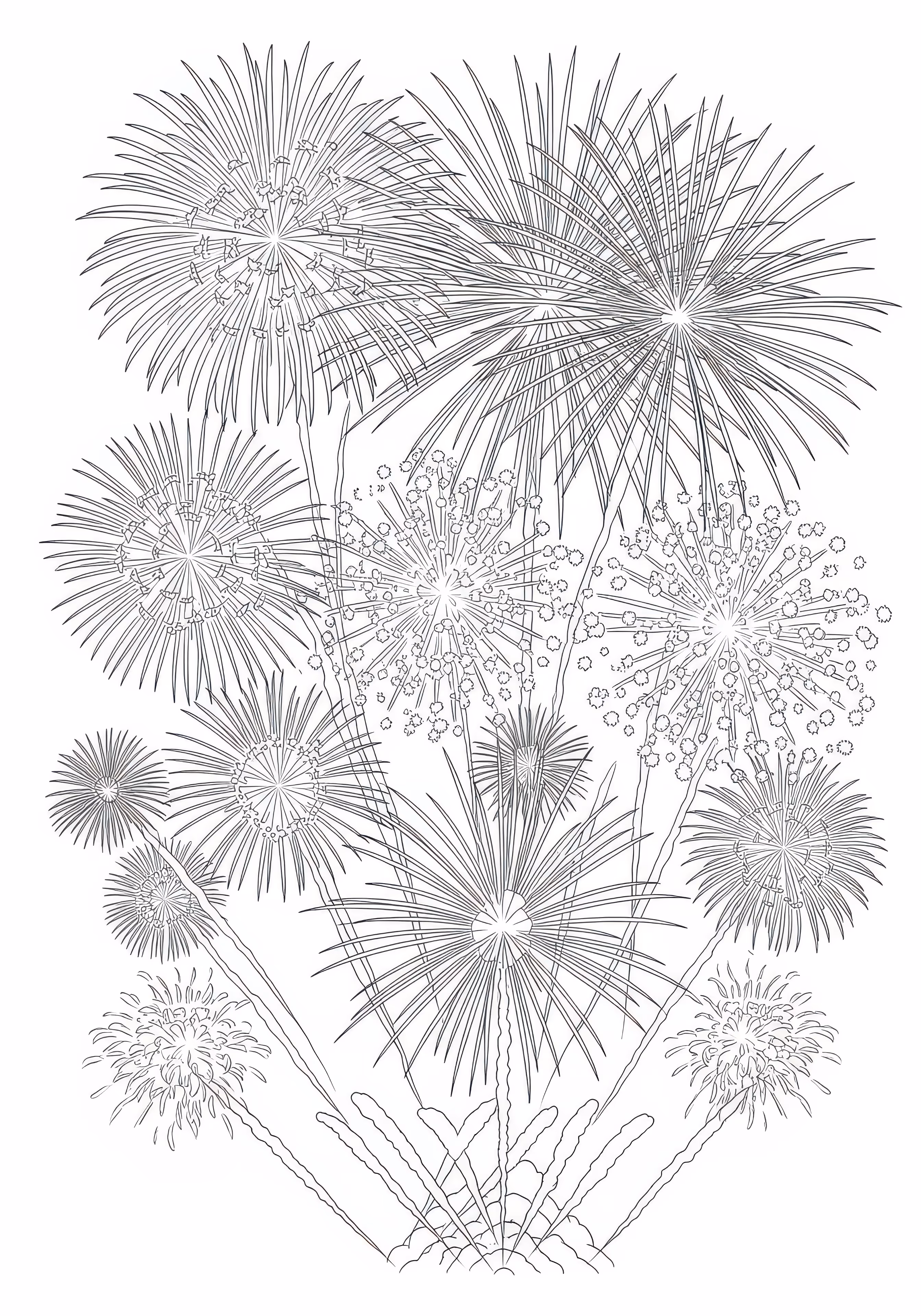 Advanced Firework is a free printable coloring page designed for adults in geometric style. This very hard difficulty coloring sheet features thin outlines, perfect for young artists.