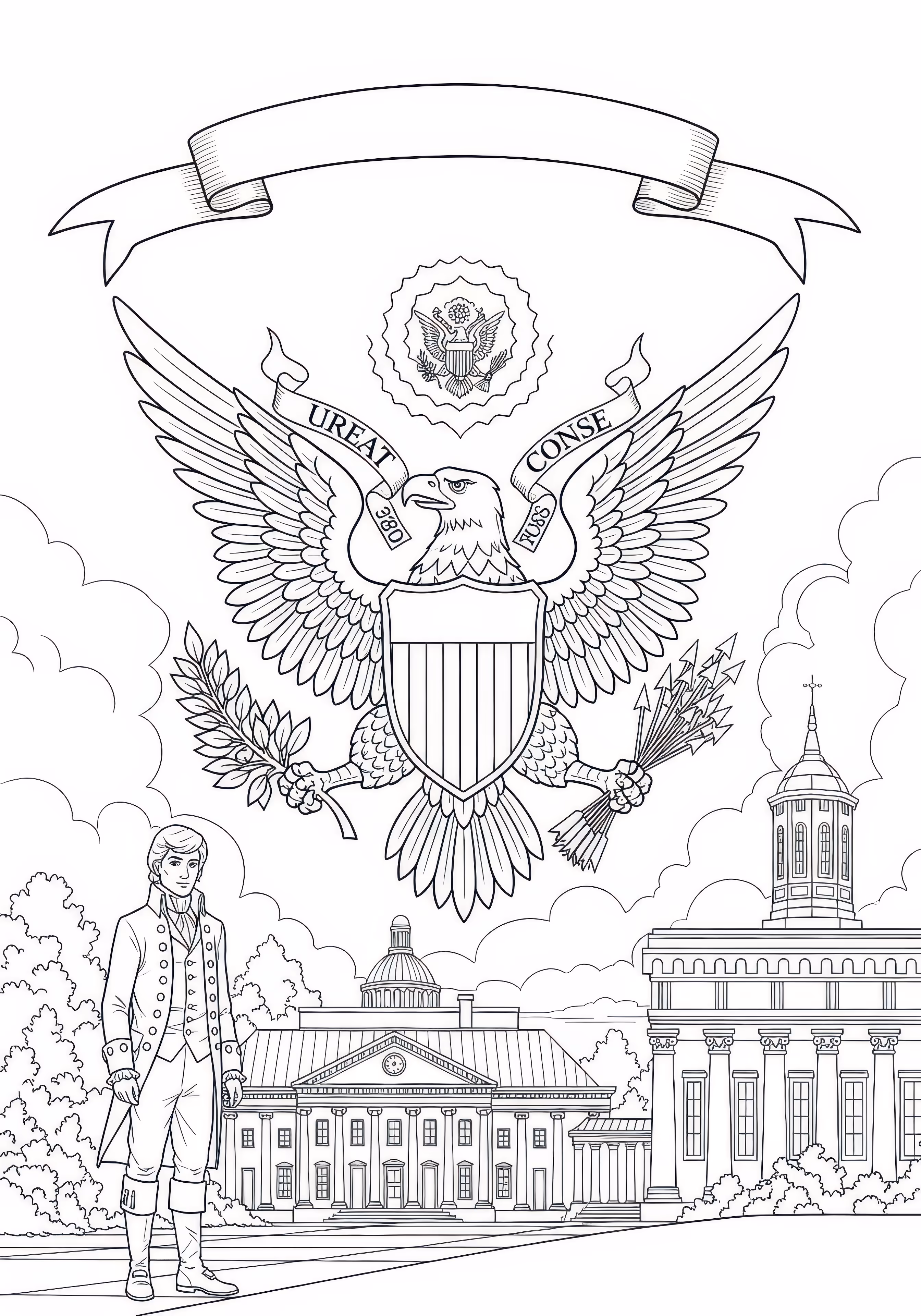 Bald Eagle Seal is a free printable coloring page designed for tweens in historical style. This hard difficulty coloring sheet features medium outlines, perfect for young artists.