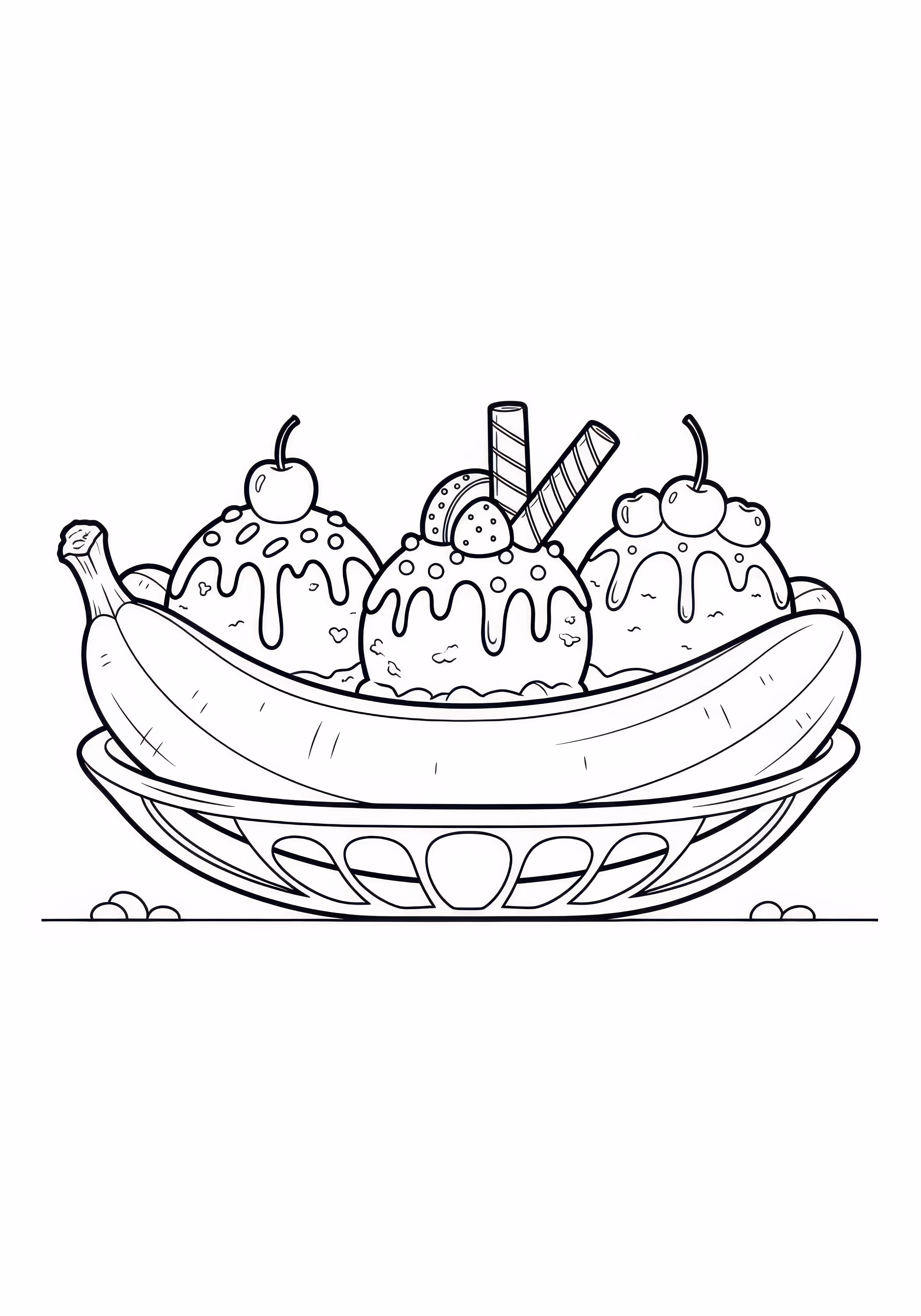 Banana Split is a free printable coloring page designed for kids in cartoon style. This medium difficulty coloring sheet features medium outlines, perfect for young artists.