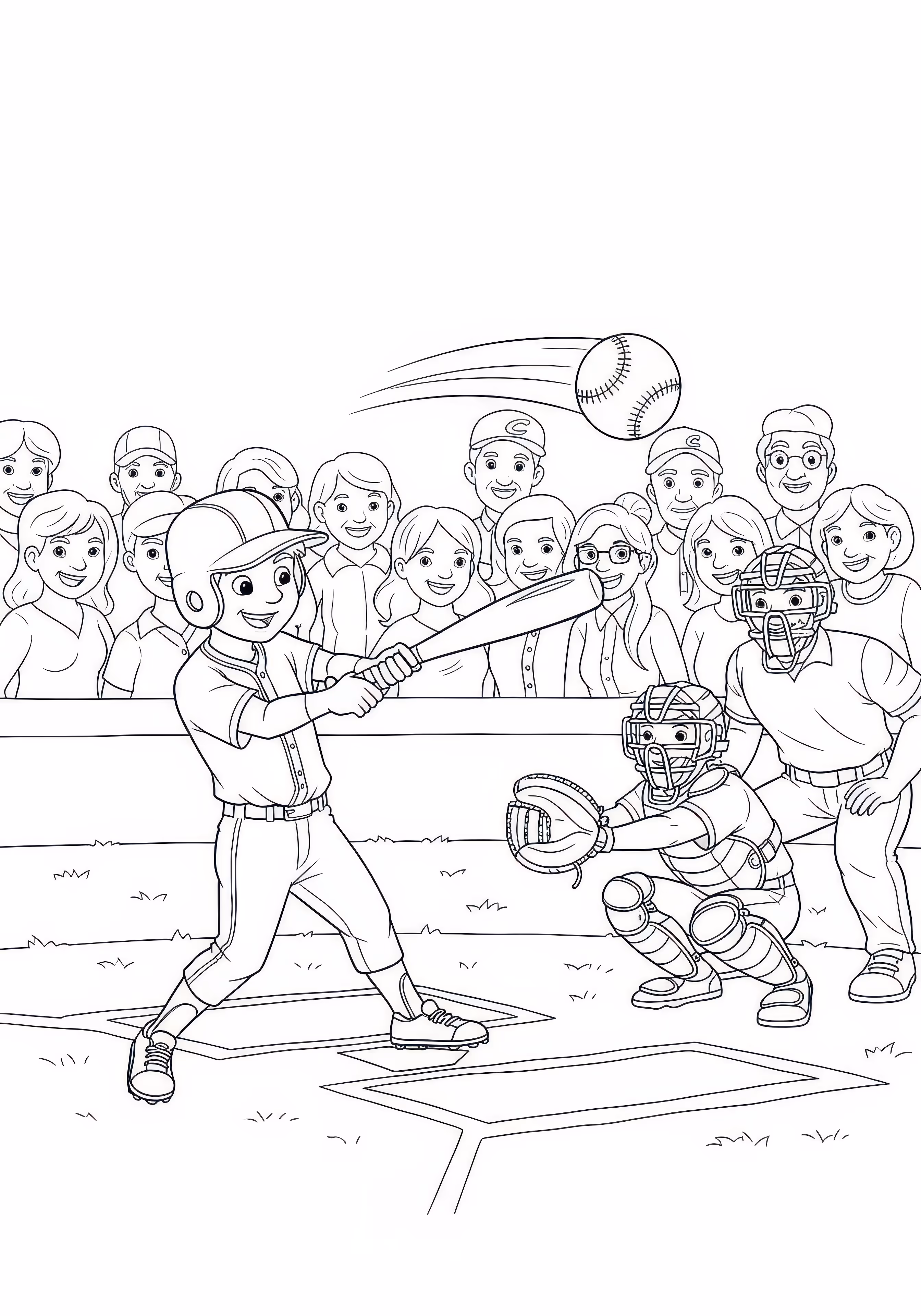 Baseball Game is a free printable coloring page designed for kids in cartoon style. This medium difficulty coloring sheet features medium outlines, perfect for young artists.