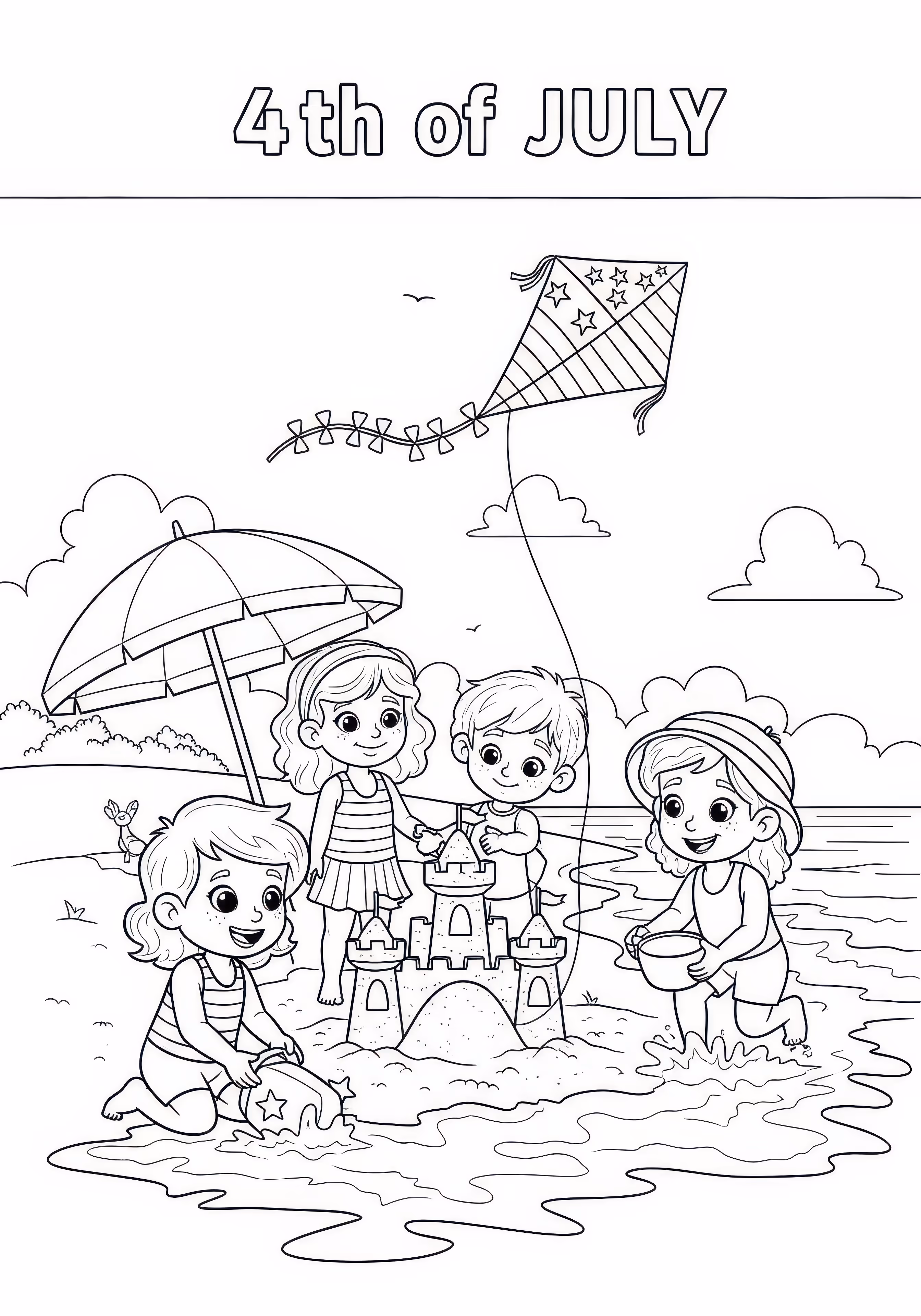 Beach Fun is a free printable coloring page designed for kids in cartoon style. This medium difficulty coloring sheet features medium outlines, perfect for young artists.
