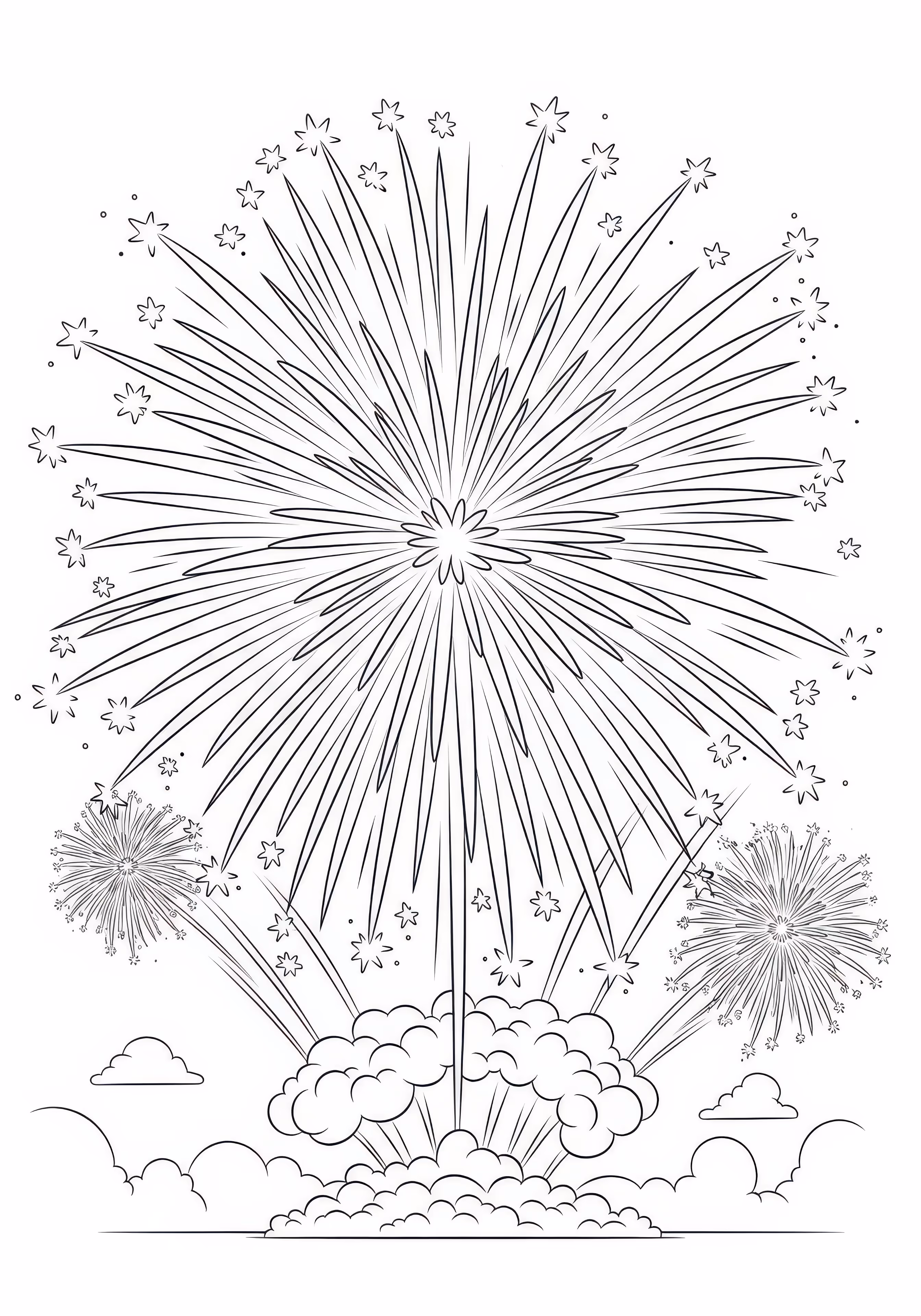 Big Fireworks is a free printable coloring page designed for kids in cartoon style. This medium difficulty coloring sheet features medium outlines, perfect for young artists.