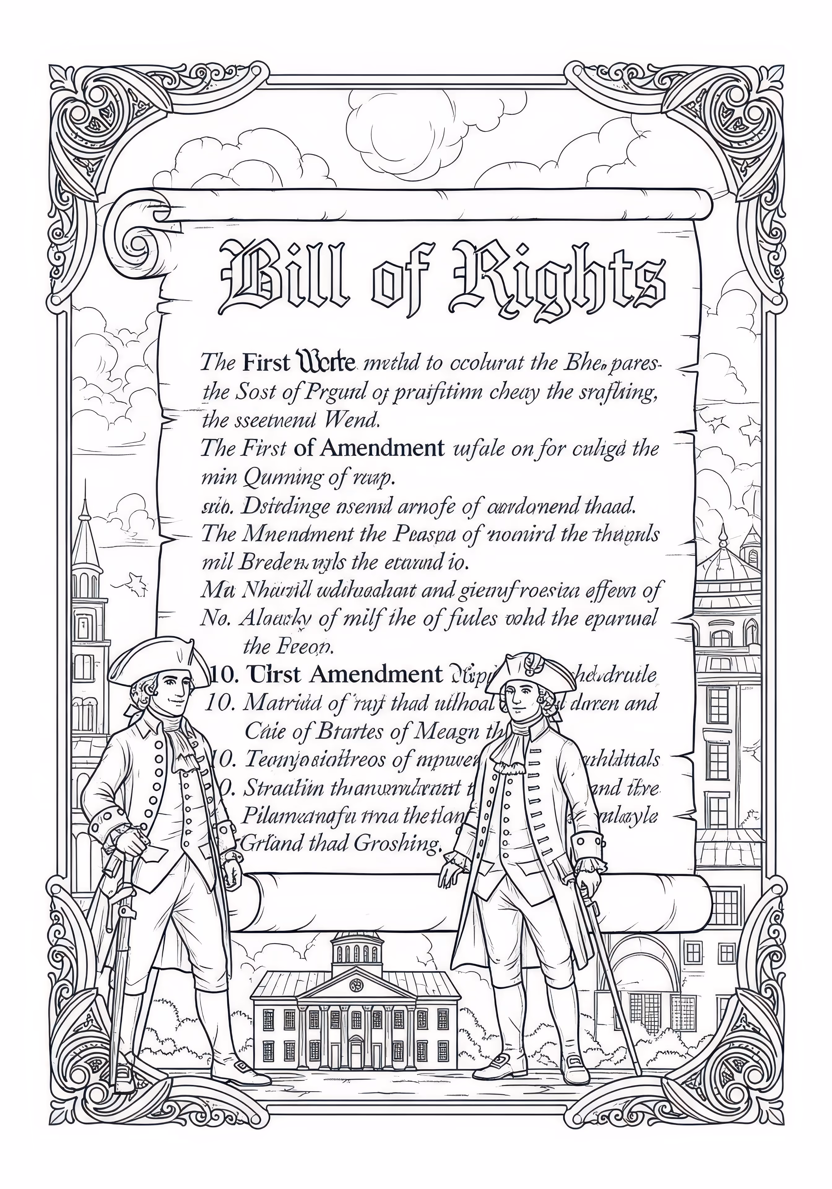 Bill Rights is a free printable coloring page designed for tweens in historical style. This hard difficulty coloring sheet features medium outlines, perfect for young artists.