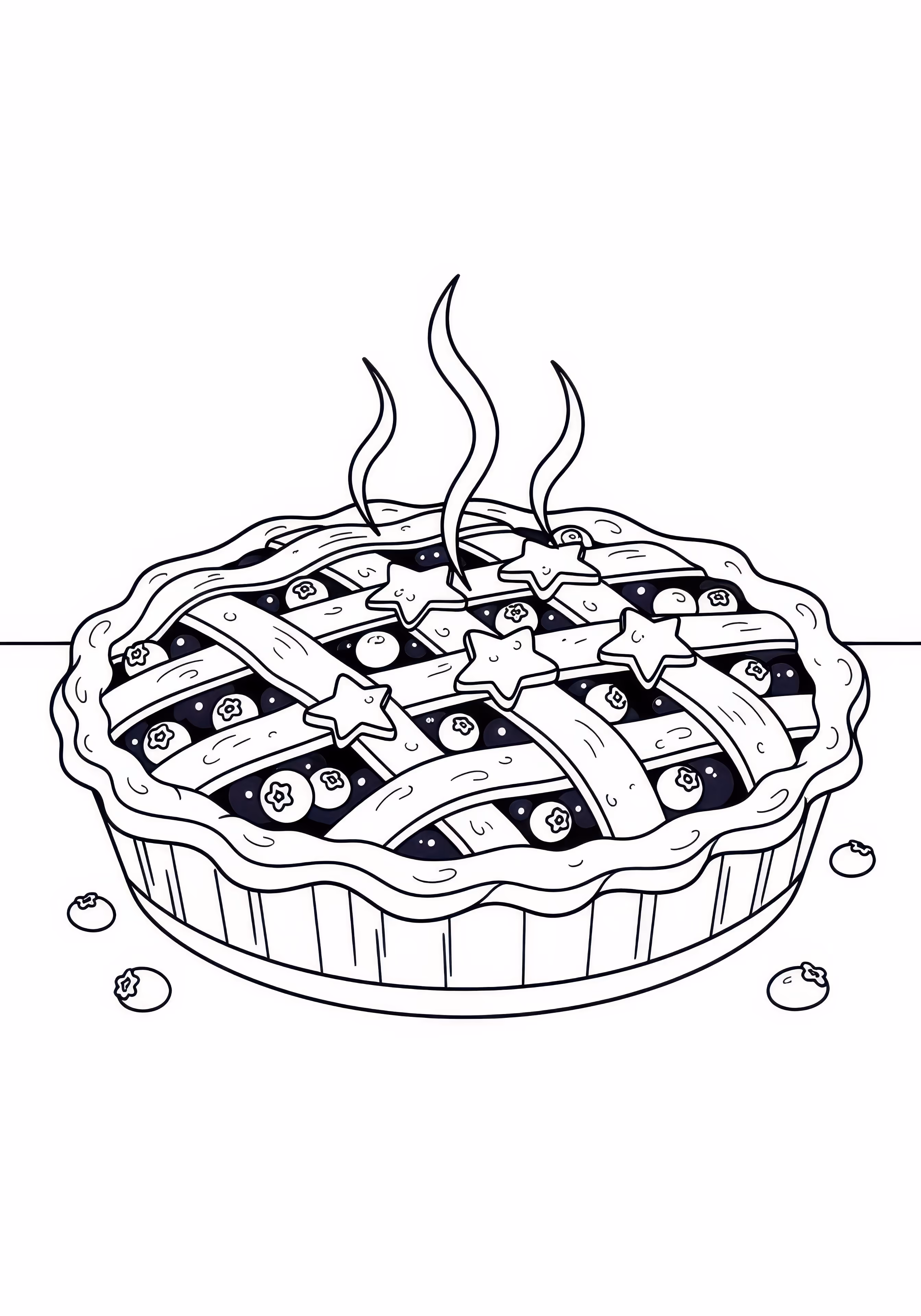 Blueberry Pie is a free printable coloring page designed for kids in cartoon style. This medium difficulty coloring sheet features medium outlines, perfect for young artists.