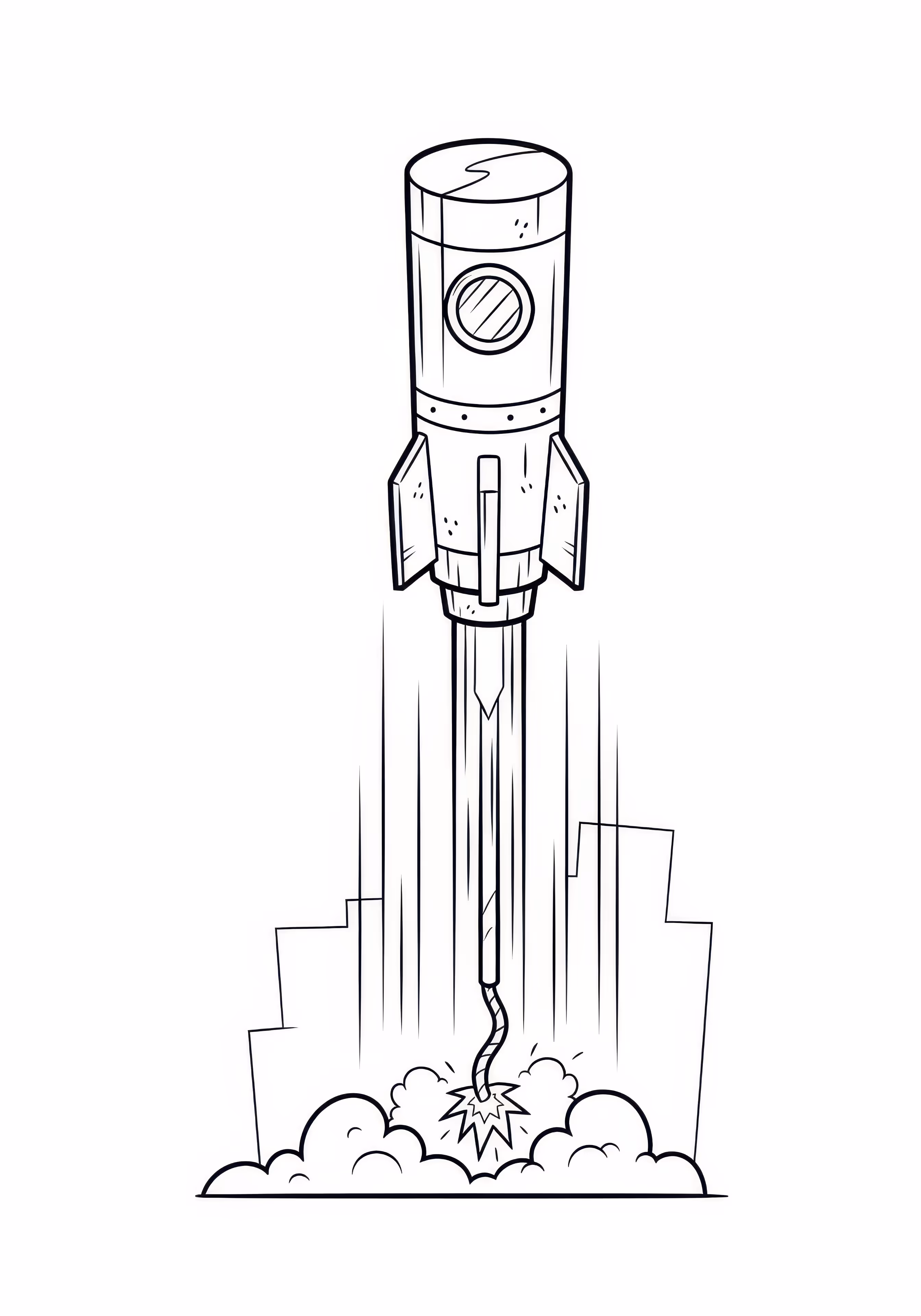 Bottle Rocket is a free printable coloring page designed for kids in cartoon style. This medium difficulty coloring sheet features medium outlines, perfect for young artists.