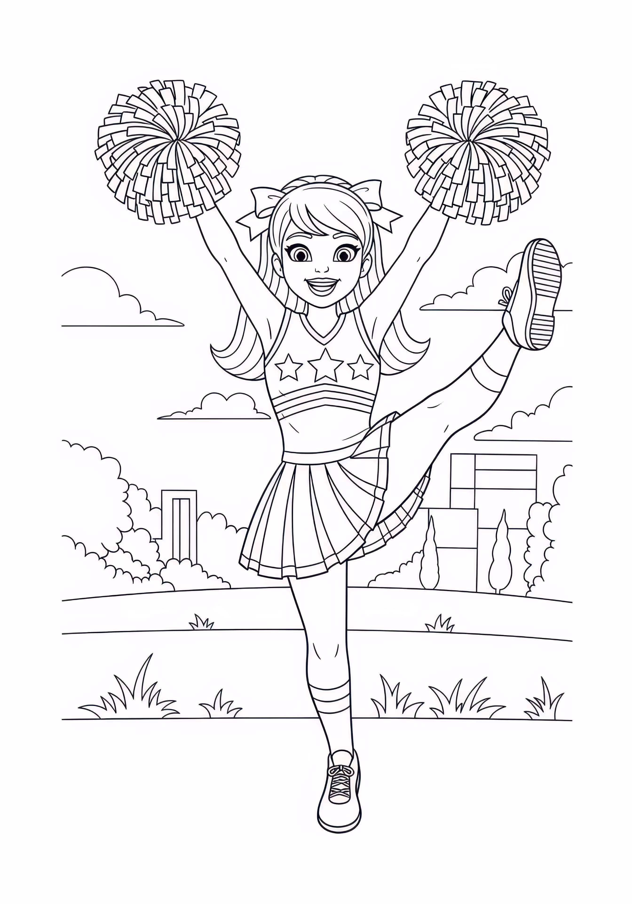 Cheerleader is a free printable coloring page designed for kids in scene style. This medium difficulty coloring sheet features medium outlines, perfect for young artists.