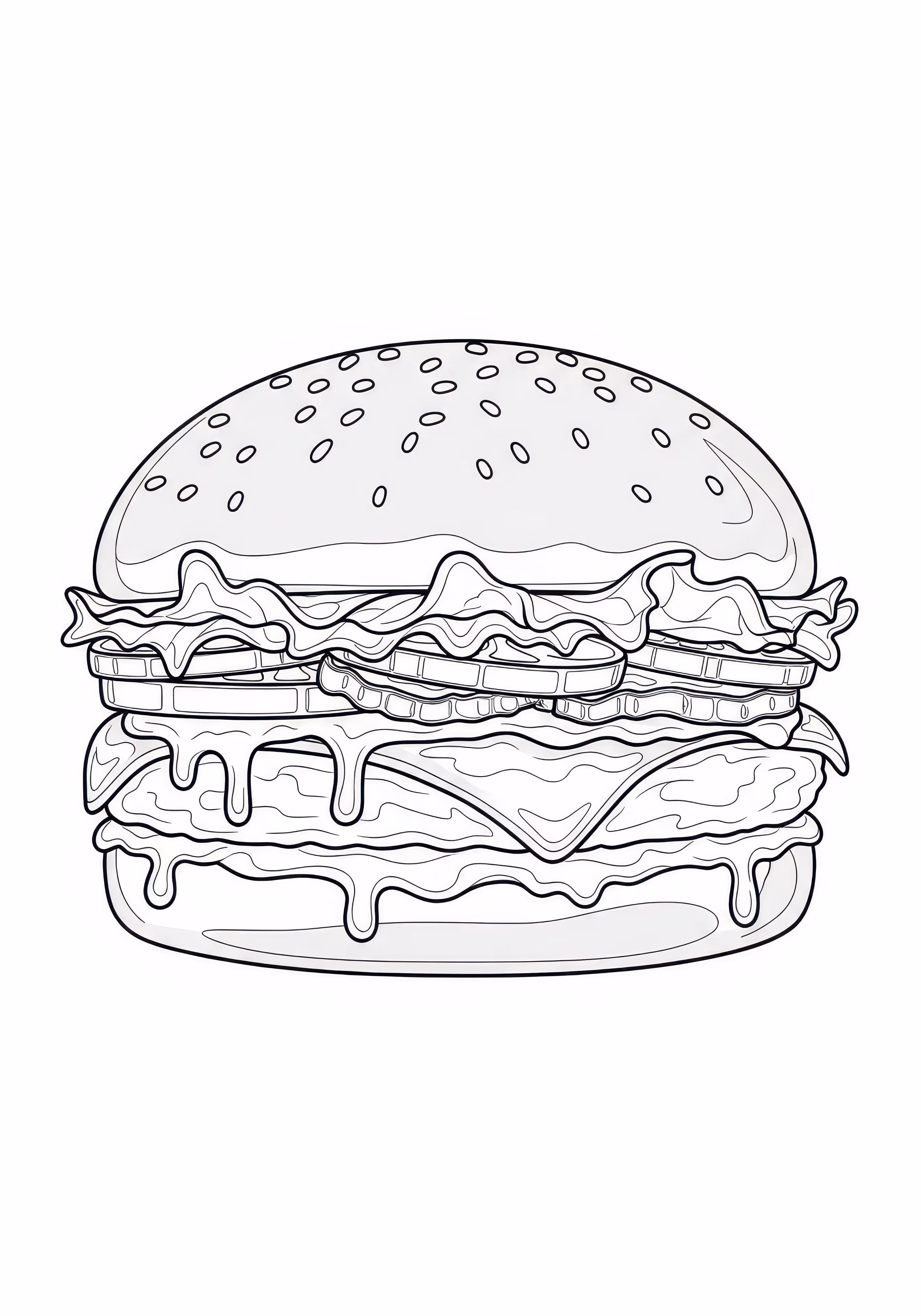 Cheeseburger is a free printable coloring page designed for kids in cartoon style. This medium difficulty coloring sheet features medium outlines, perfect for young artists.