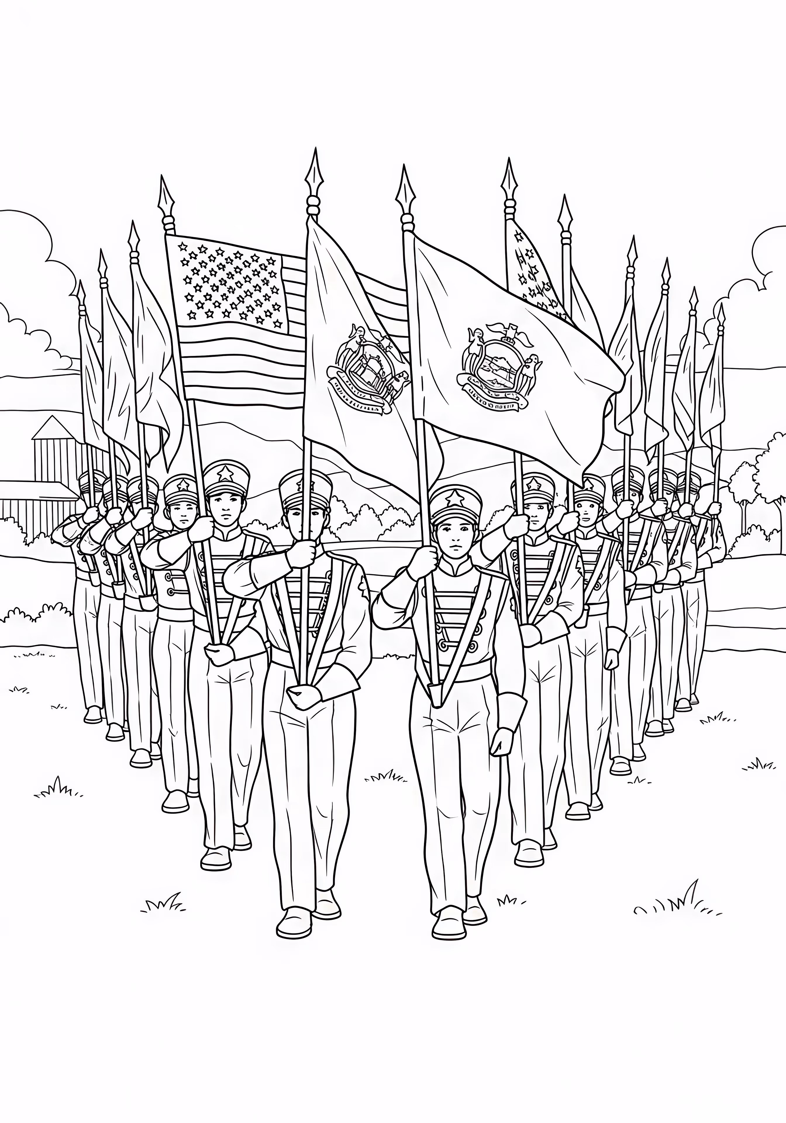 Color Guard is a free printable coloring page designed for kids in scene style. This medium difficulty coloring sheet features medium outlines, perfect for young artists.