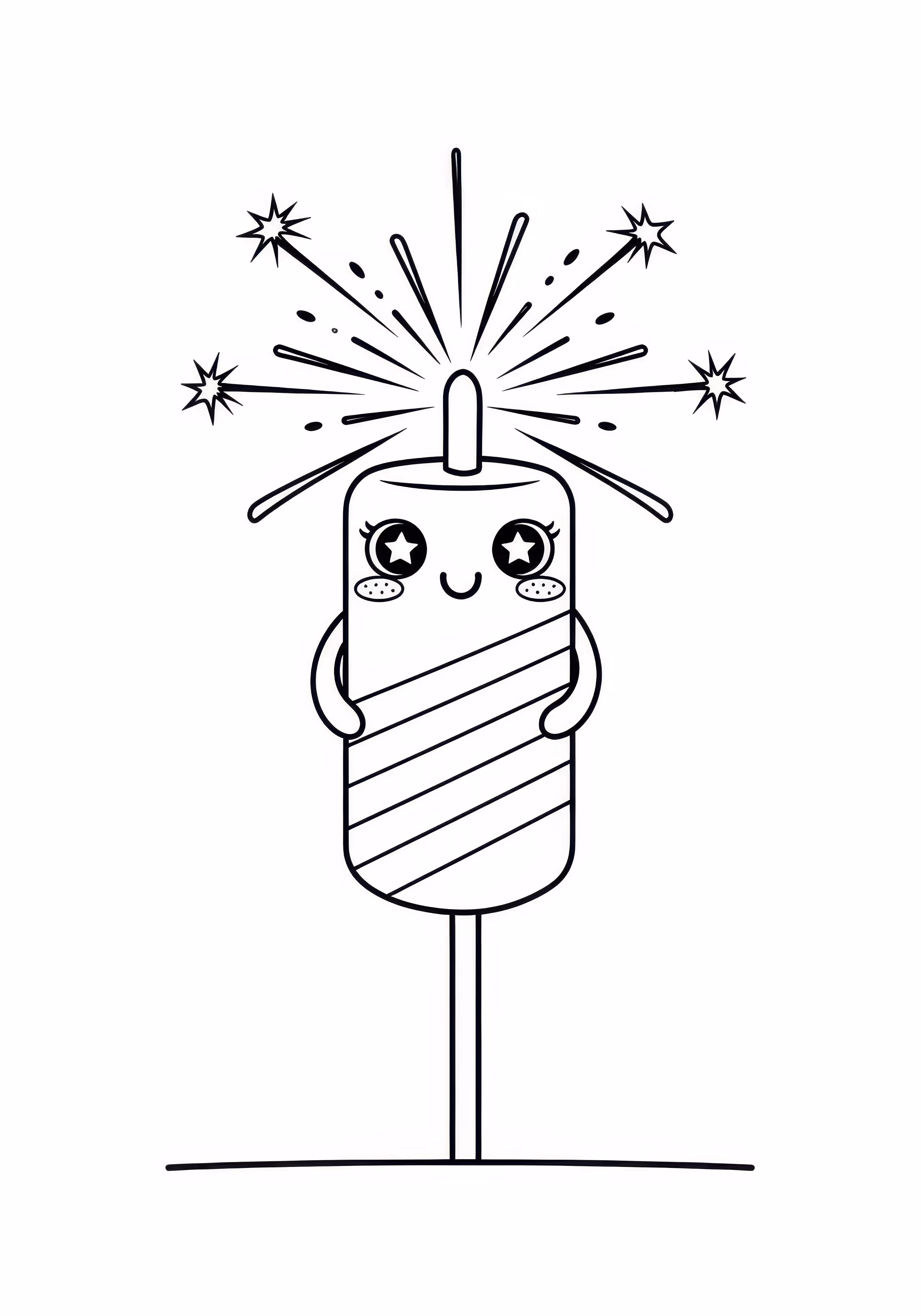 Cute Sparkler is a free printable coloring page designed for preschool in kawaii style. This easy difficulty coloring sheet features thick outlines, perfect for young artists.