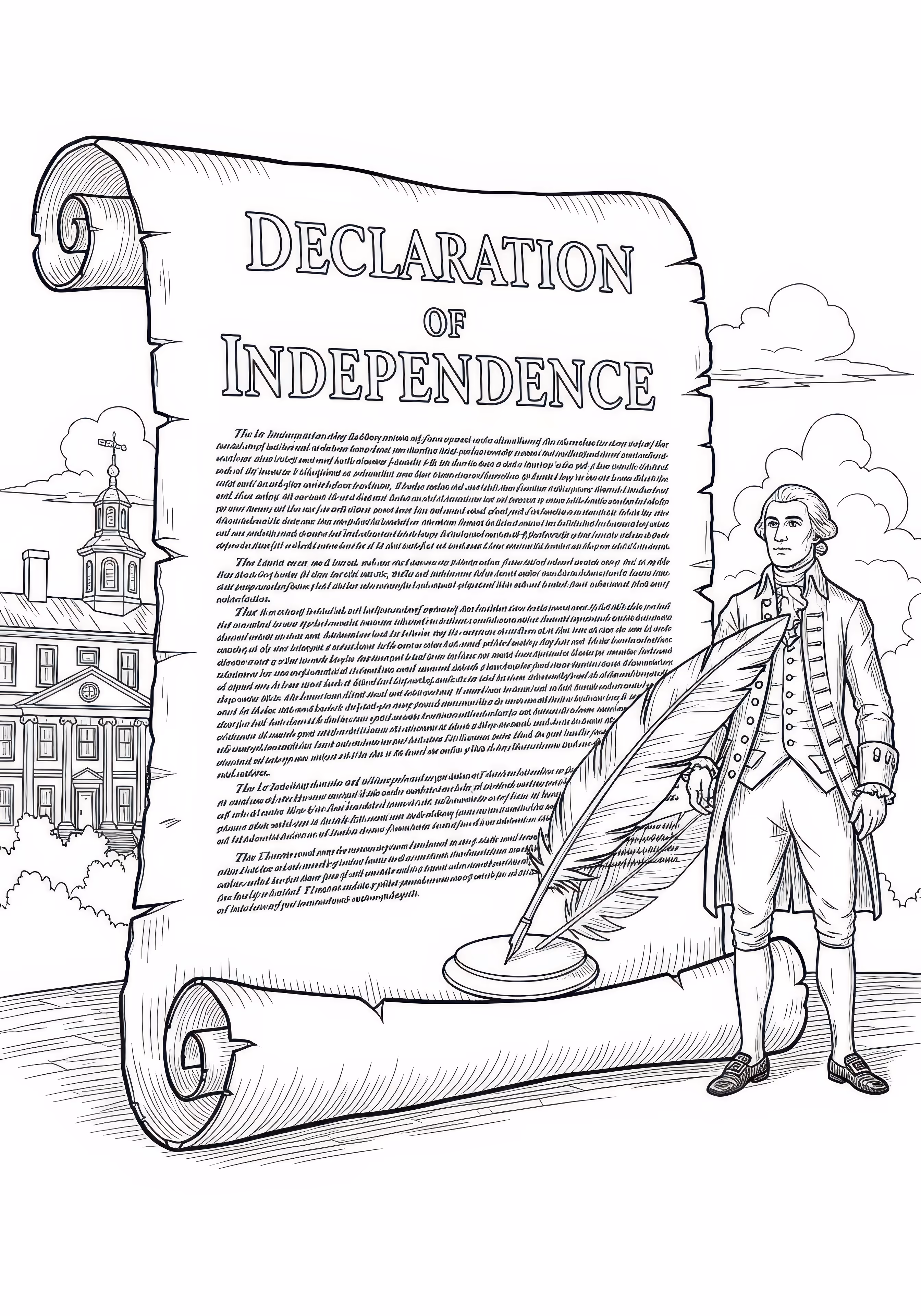 Declaration Independence is a free printable coloring page designed for tweens in historical style. This hard difficulty coloring sheet features medium outlines, perfect for young artists.