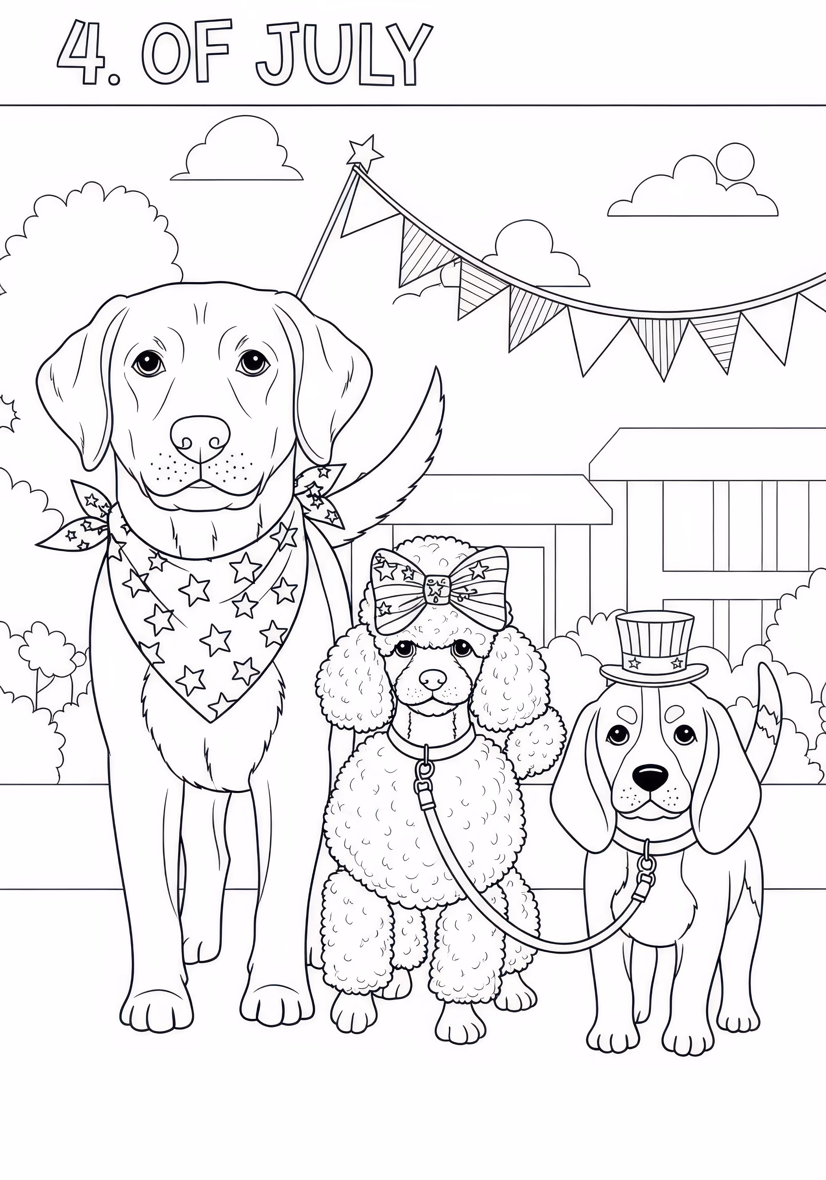 Dog Parade is a free printable coloring page designed for kids in scene style. This medium difficulty coloring sheet features medium outlines, perfect for young artists.