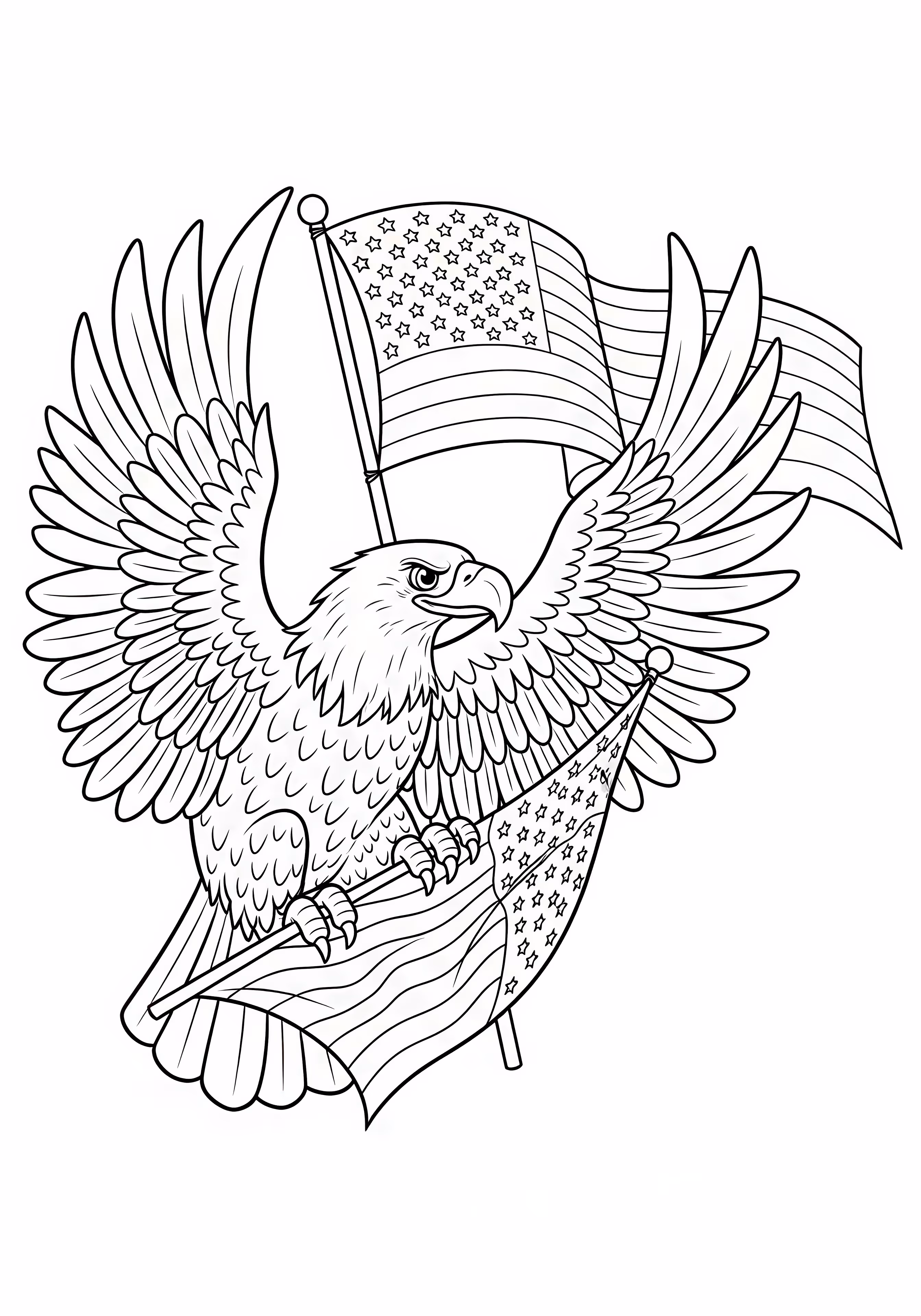 Eagle Flag is a free printable coloring page designed for kids in cartoon style. This medium difficulty coloring sheet features medium outlines, perfect for young artists.