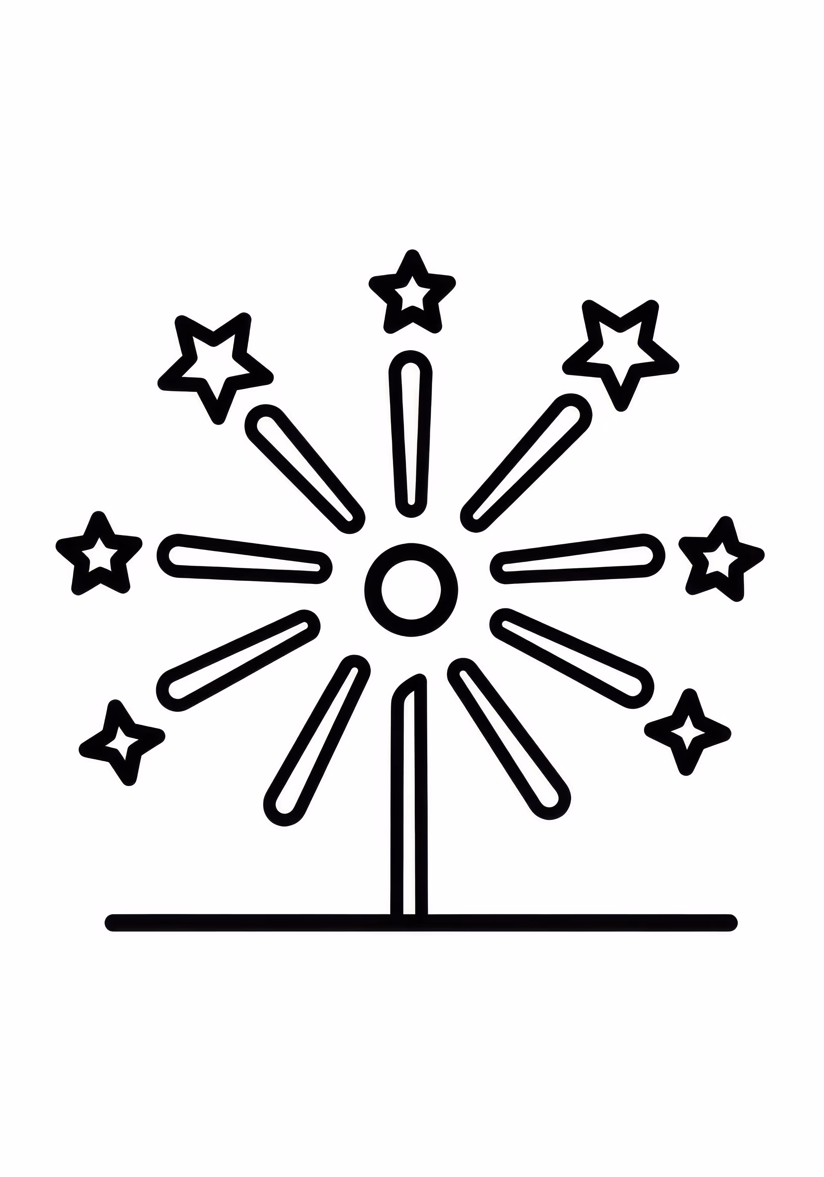 Easy Fireworks is a free printable coloring page designed for preschool in simple style. This easy difficulty coloring sheet features thick outlines, perfect for young artists.