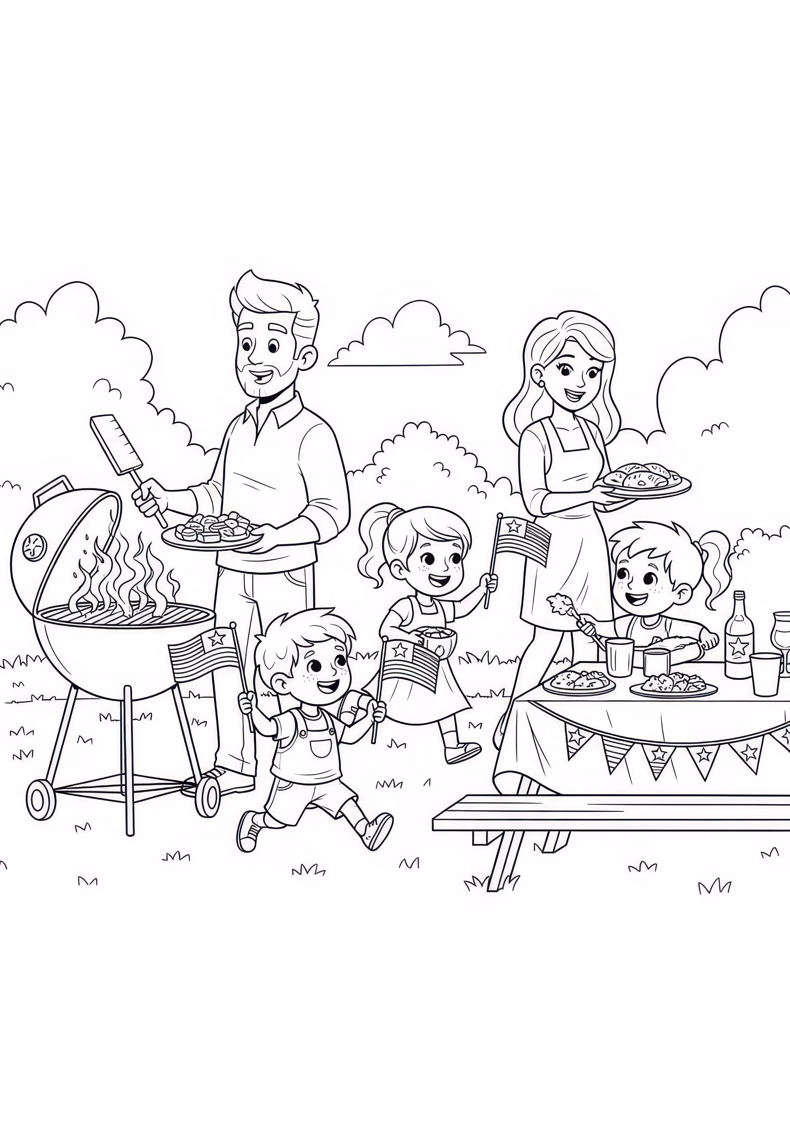Family Bbq is a free printable coloring page designed for kids in cartoon style. This medium difficulty coloring sheet features medium outlines, perfect for young artists.