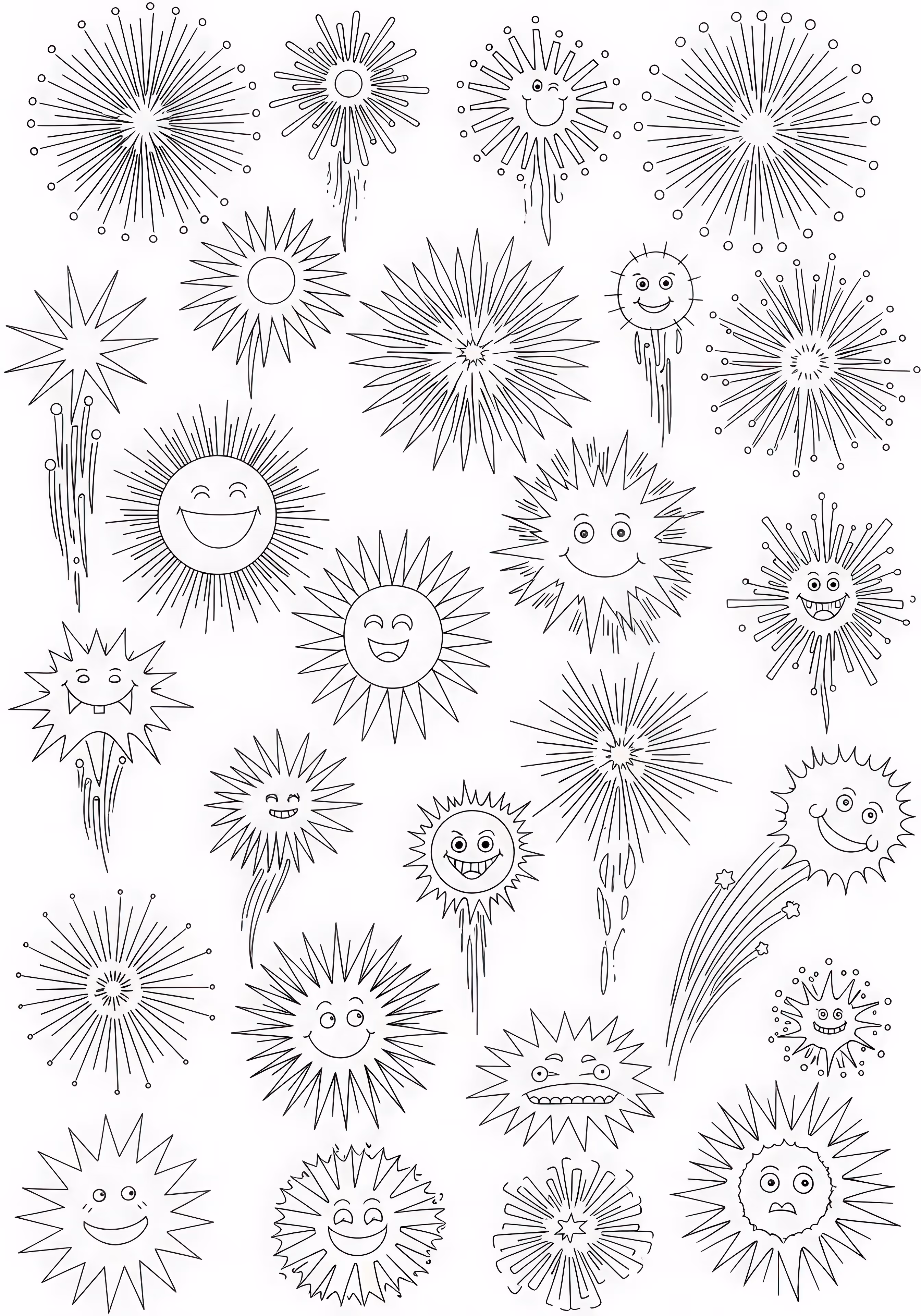 Firework Doodle is a free printable coloring page designed for adults in doodle style. This very hard difficulty coloring sheet features thin outlines, perfect for young artists.