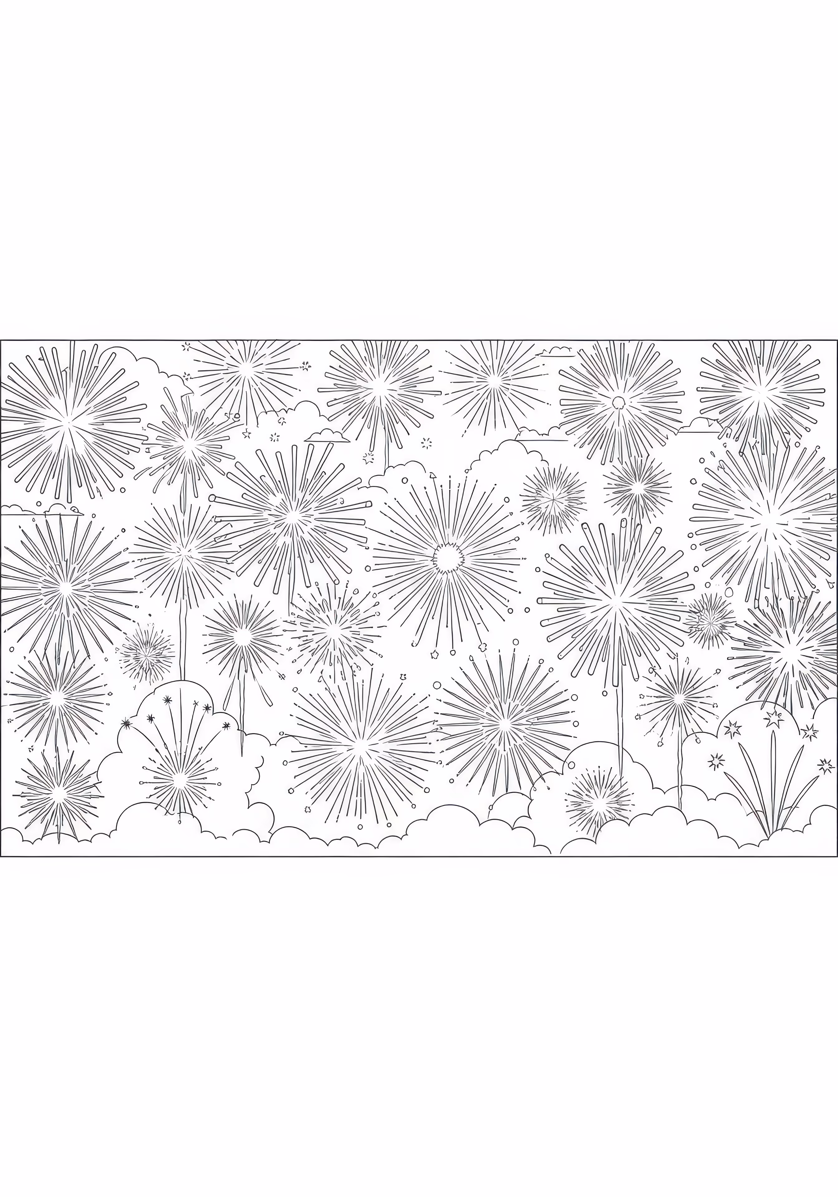 Firework Sky is a free printable coloring page designed for kids in cartoon style. This medium difficulty coloring sheet features medium outlines, perfect for young artists.