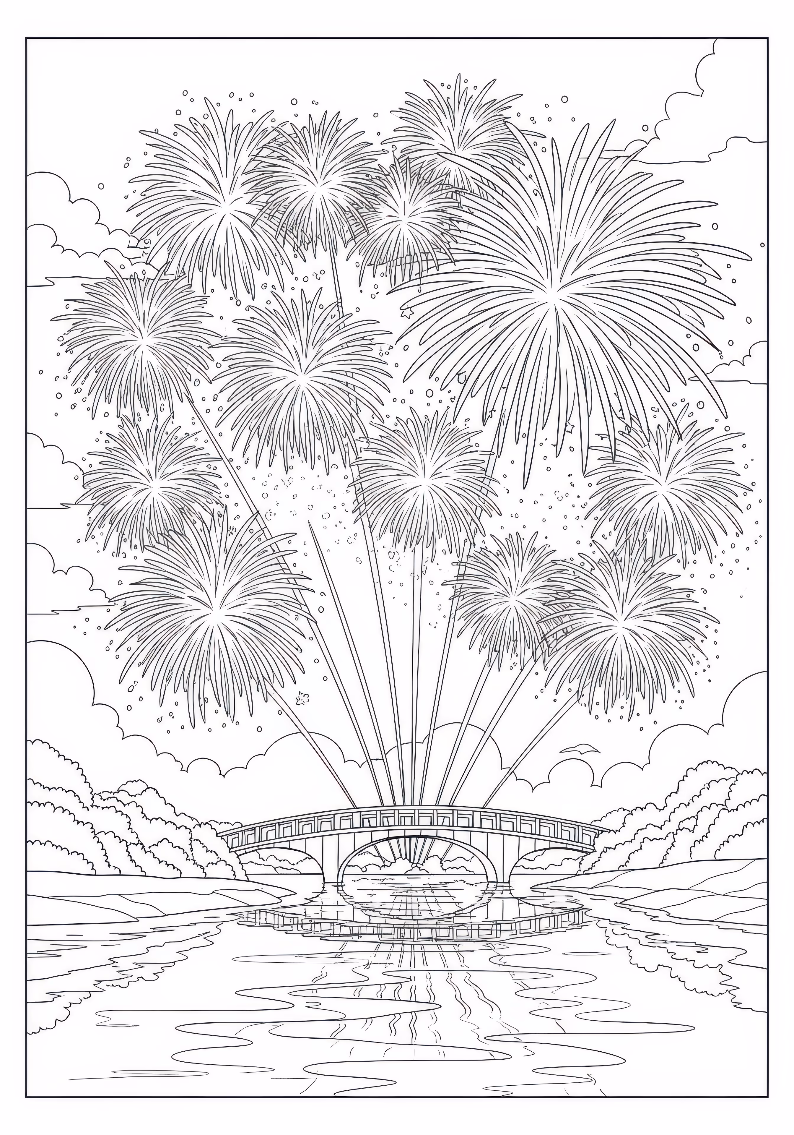 Fireworks Display is a free printable coloring page designed for kids in cartoon style. This medium difficulty coloring sheet features medium outlines, perfect for young artists.