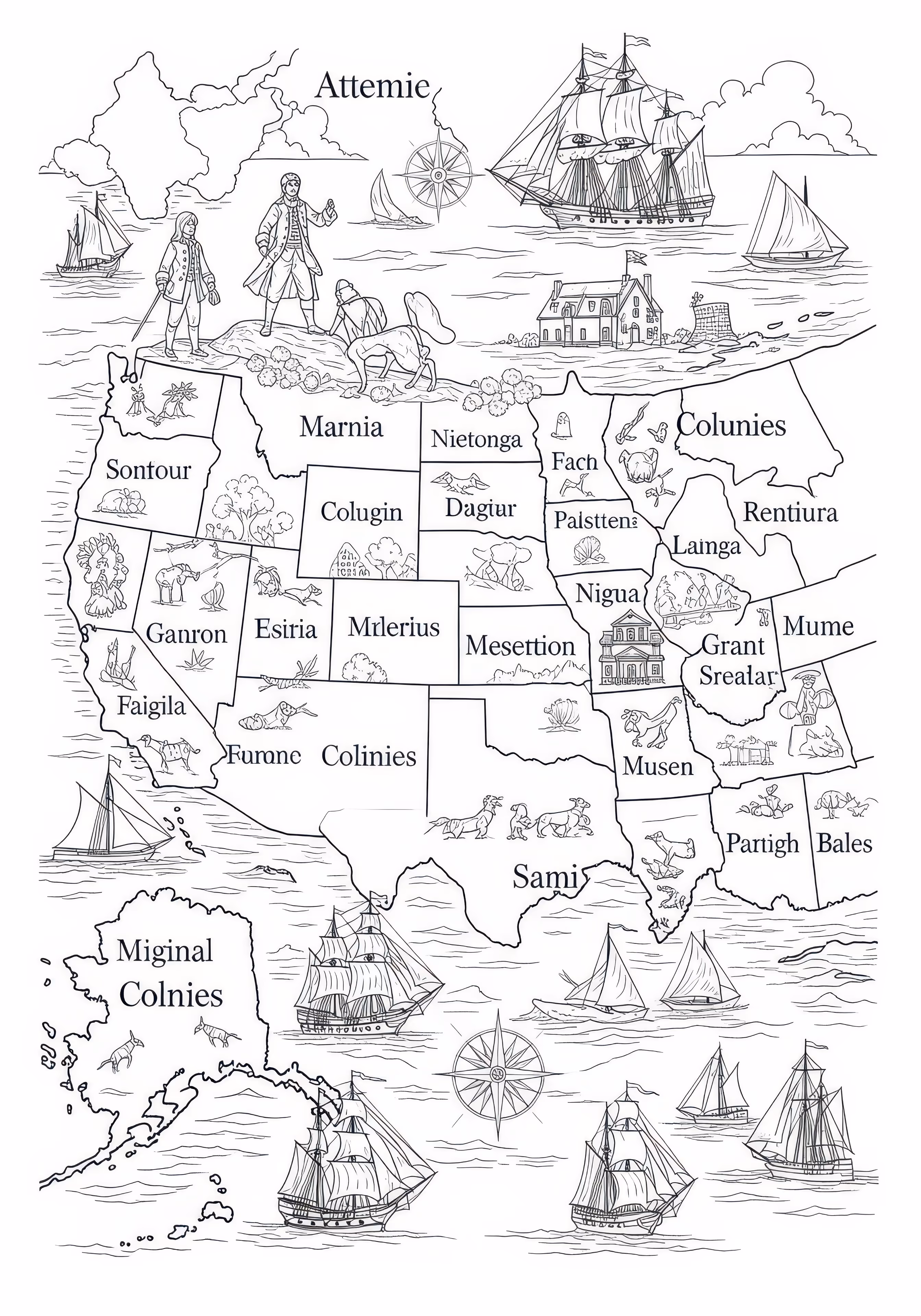 First Thirteen is a free printable coloring page designed for tweens in historical style. This hard difficulty coloring sheet features medium outlines, perfect for young artists.