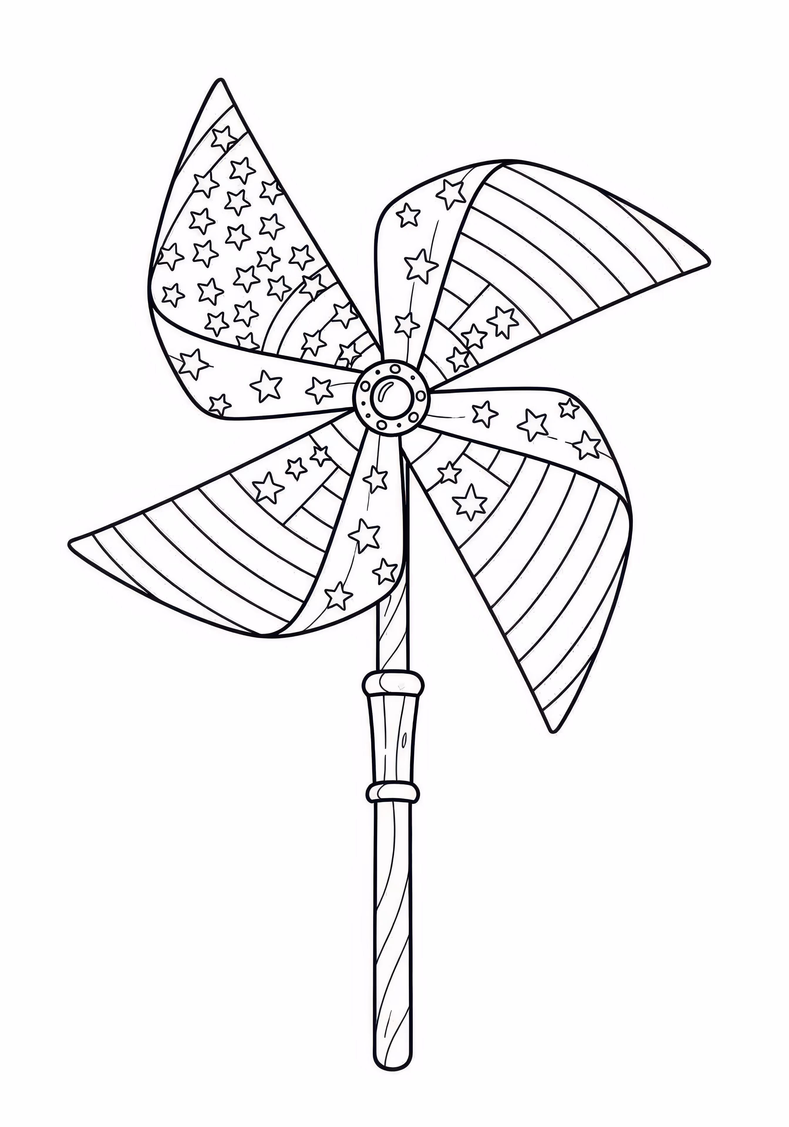 Flag Pinwheel is a free printable coloring page designed for kids in cartoon style. This medium difficulty coloring sheet features medium outlines, perfect for young artists.