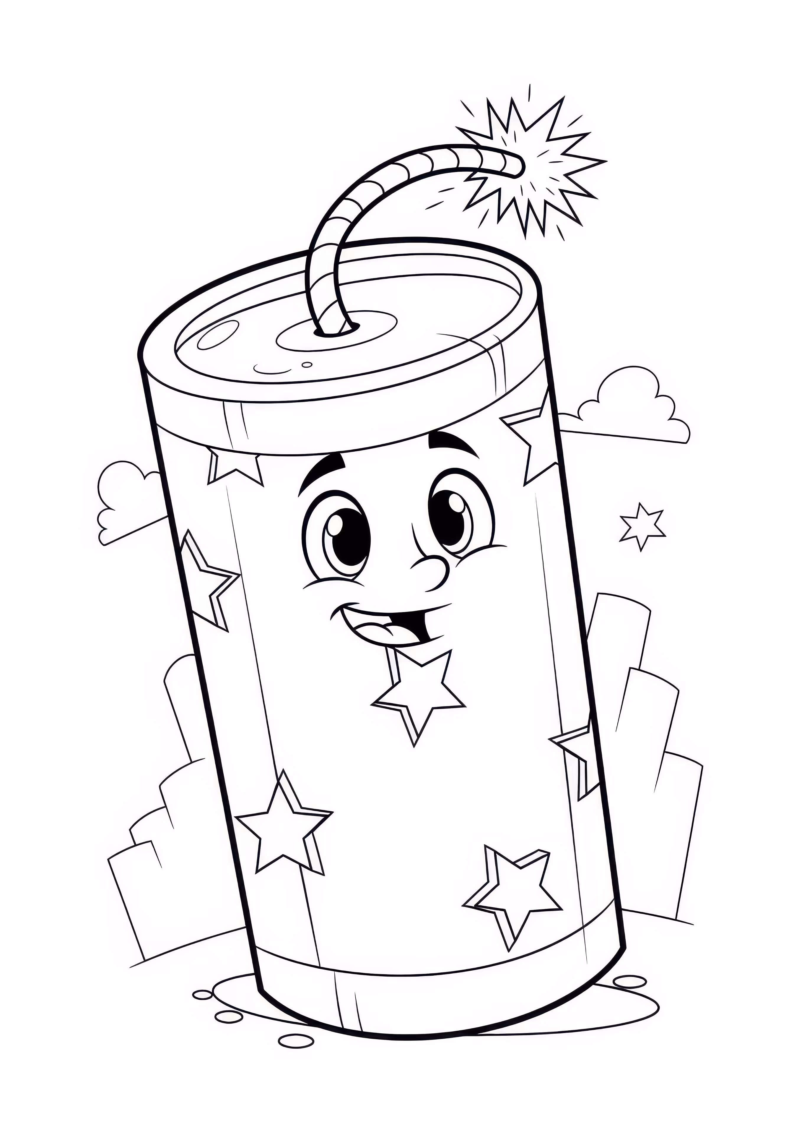 Giant Firecracker is a free printable coloring page designed for kids in cartoon style. This medium difficulty coloring sheet features medium outlines, perfect for young artists.
