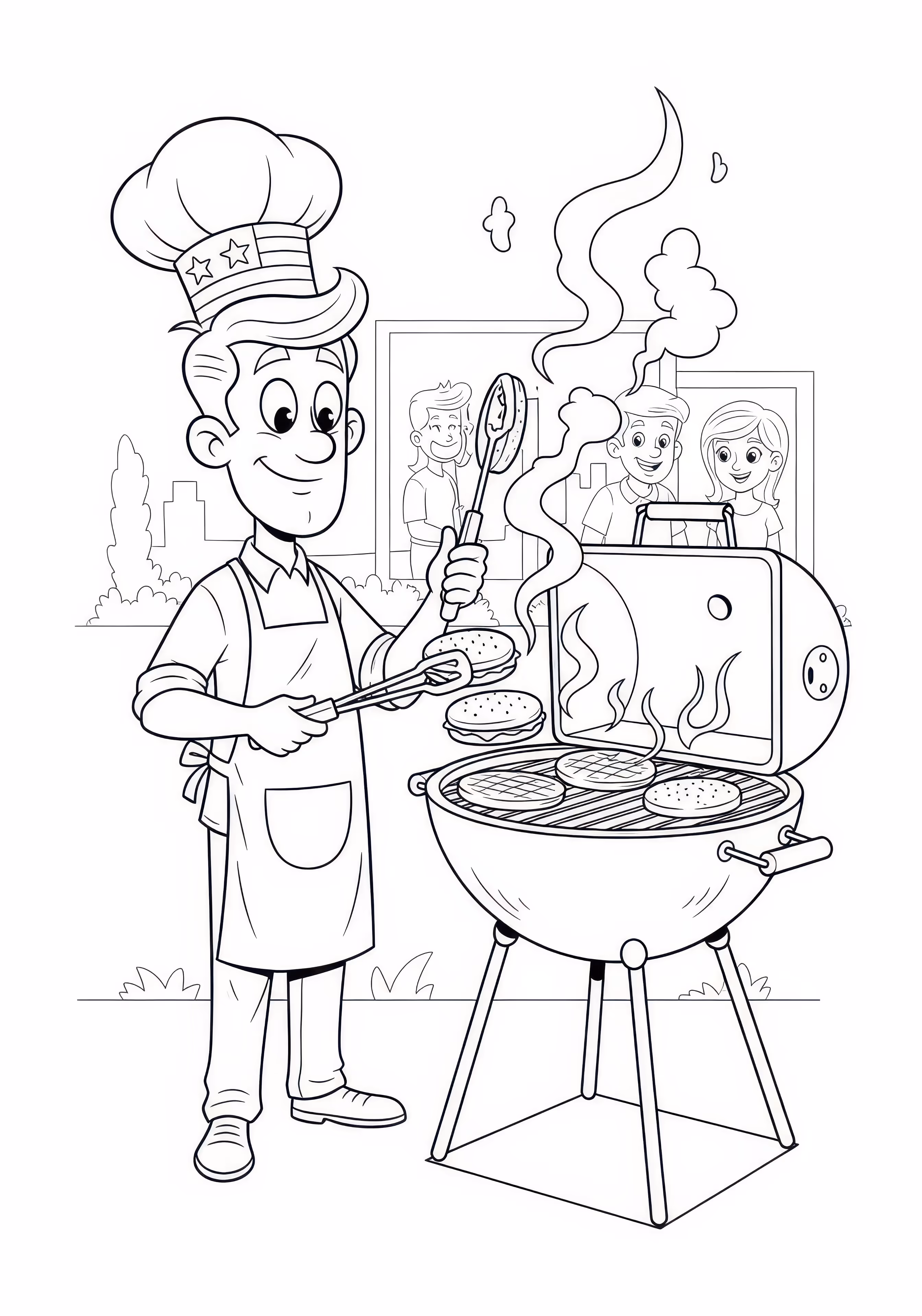 Grilling Dad is a free printable coloring page designed for kids in cartoon style. This medium difficulty coloring sheet features medium outlines, perfect for young artists.