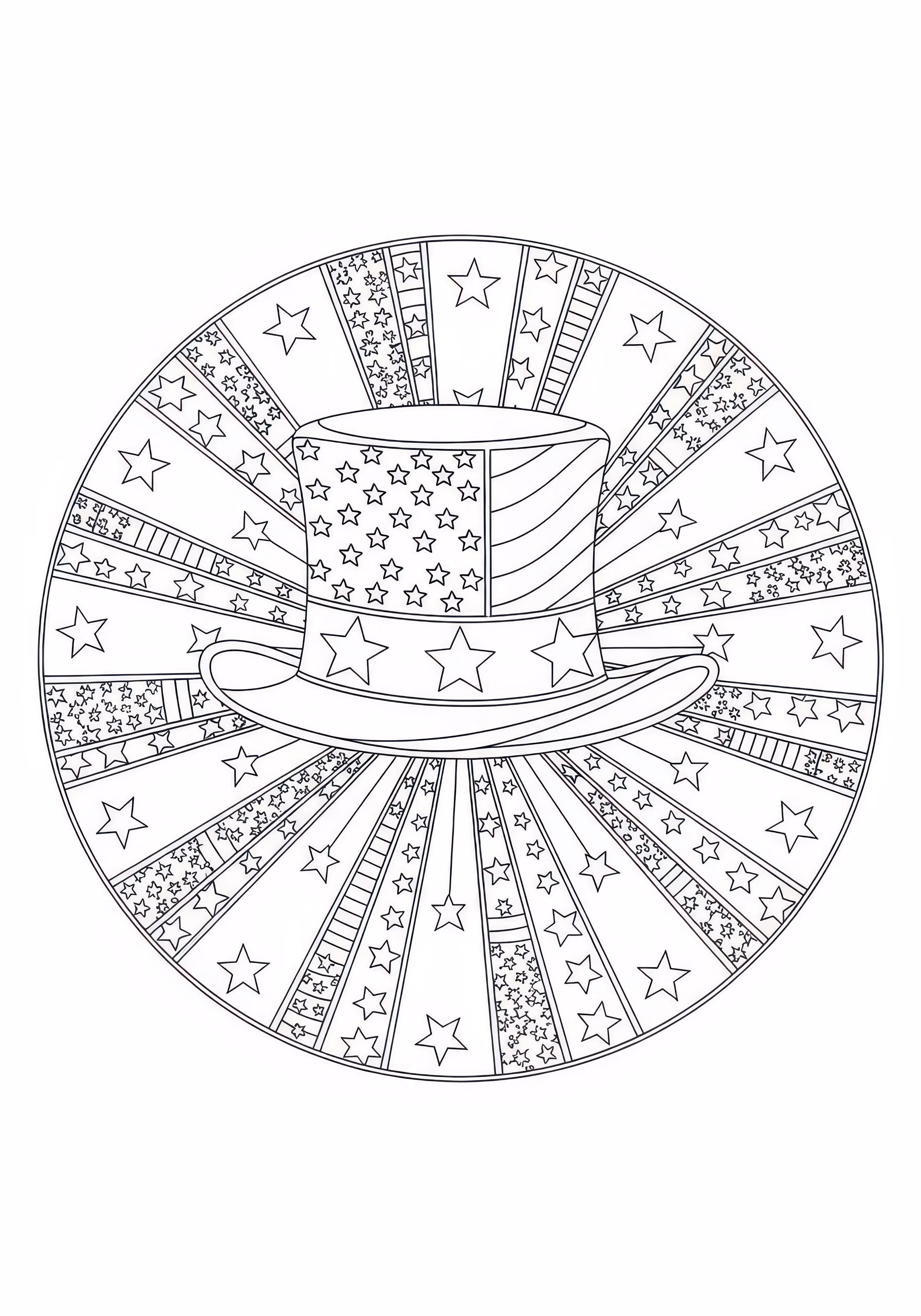 Hat Mandala is a free printable coloring page designed for adults in mandala style. This very hard difficulty coloring sheet features thin outlines, perfect for young artists.