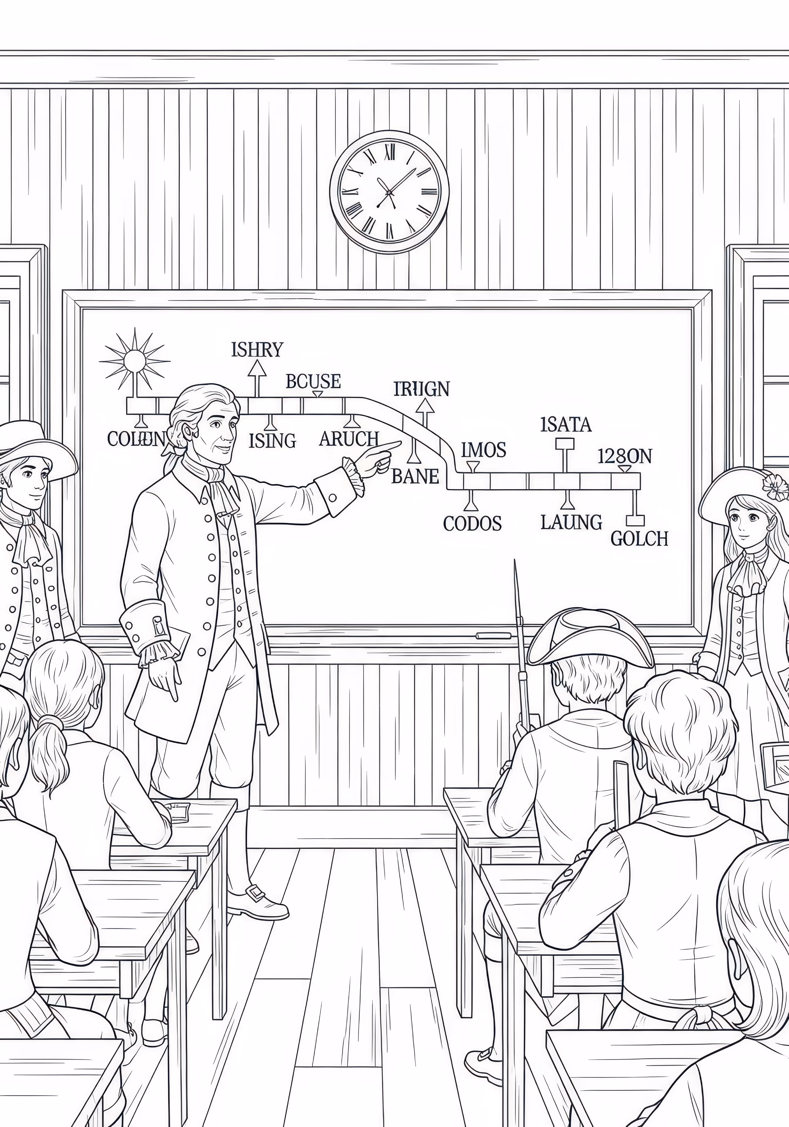 History Lesson is a free printable coloring page designed for tweens in historical style. This hard difficulty coloring sheet features medium outlines, perfect for young artists.