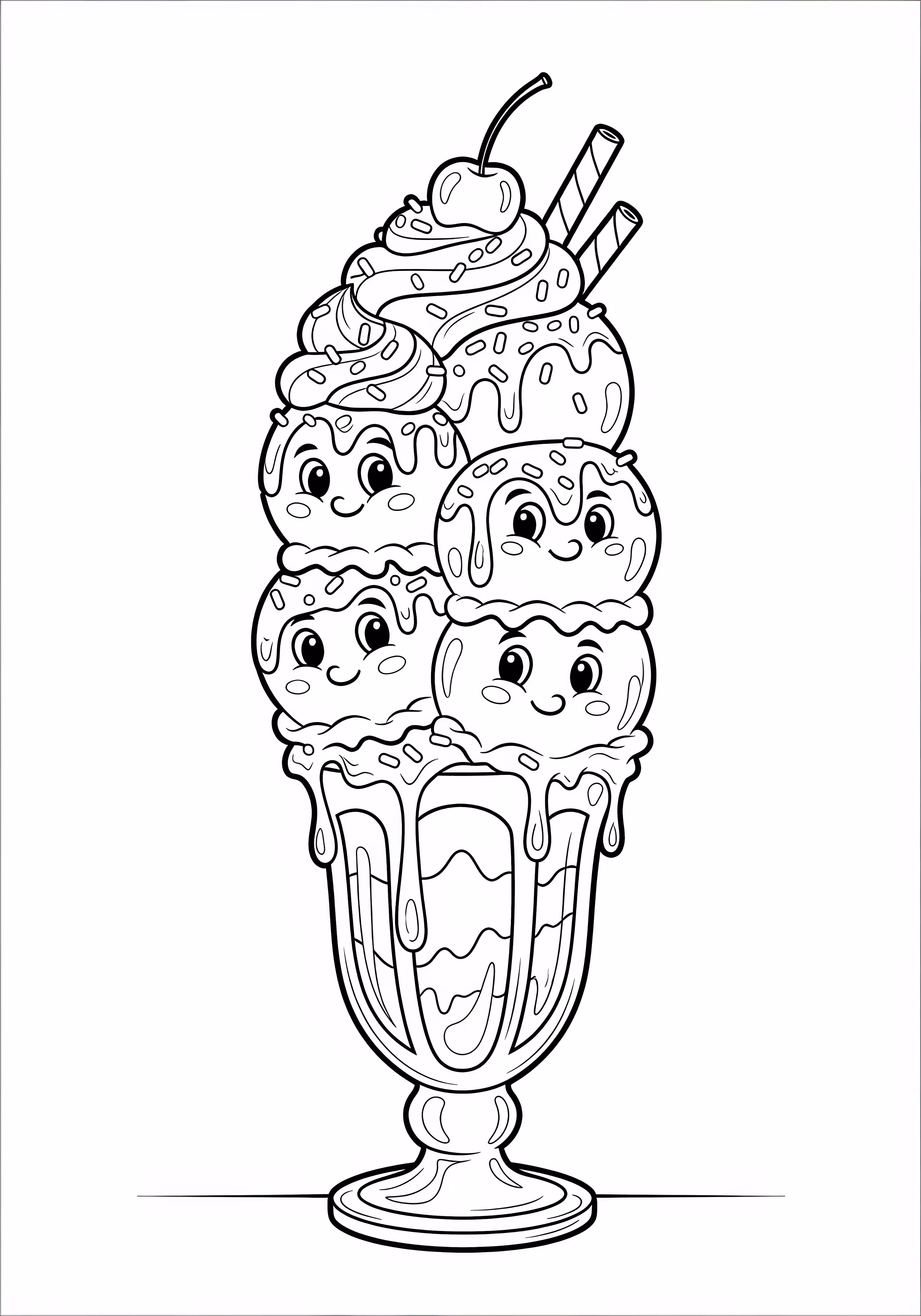 Ice Cream Sundae is a free printable coloring page designed for kids in cartoon style. This medium difficulty coloring sheet features medium outlines, perfect for young artists.