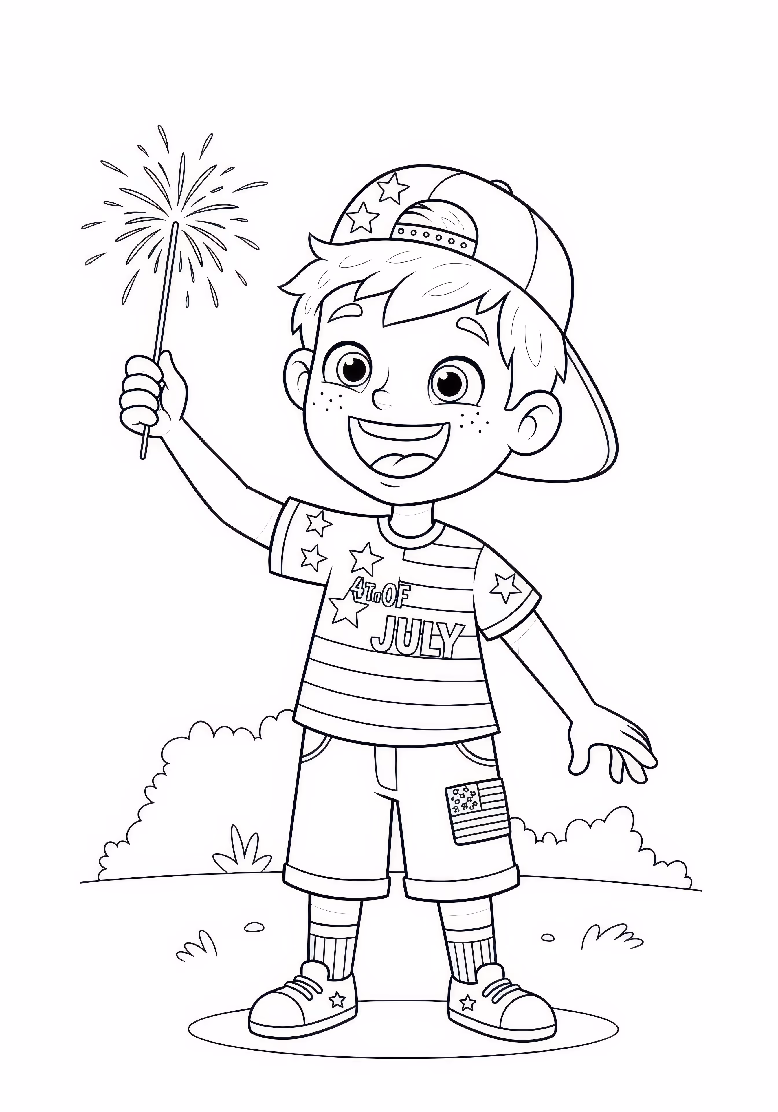 July Boy is a free printable coloring page designed for kids in cartoon style. This medium difficulty coloring sheet features medium outlines, perfect for young artists.