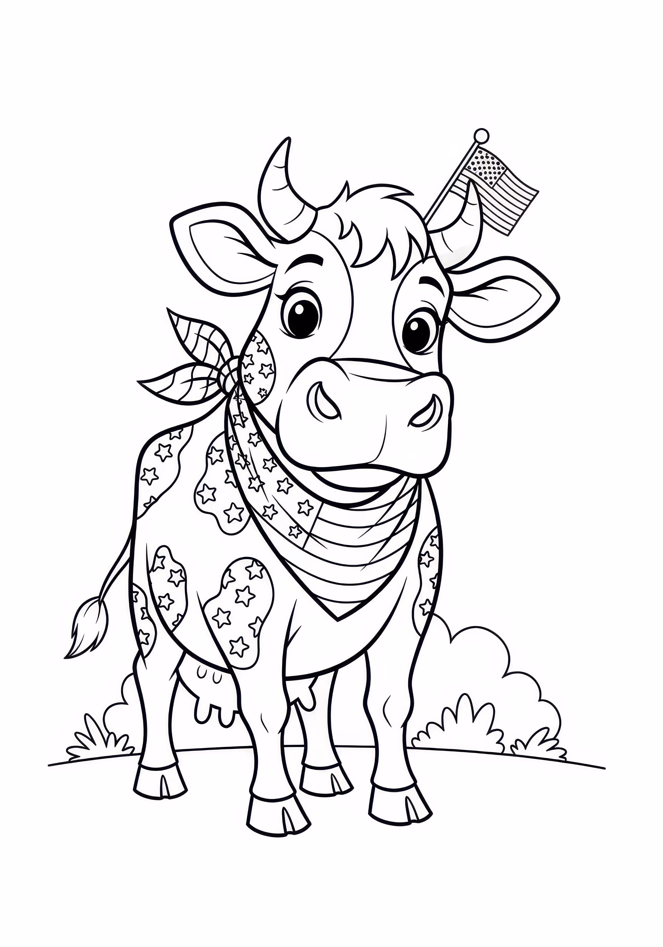 July Cow is a free printable coloring page designed for kids in cartoon style. This medium difficulty coloring sheet features medium outlines, perfect for young artists.