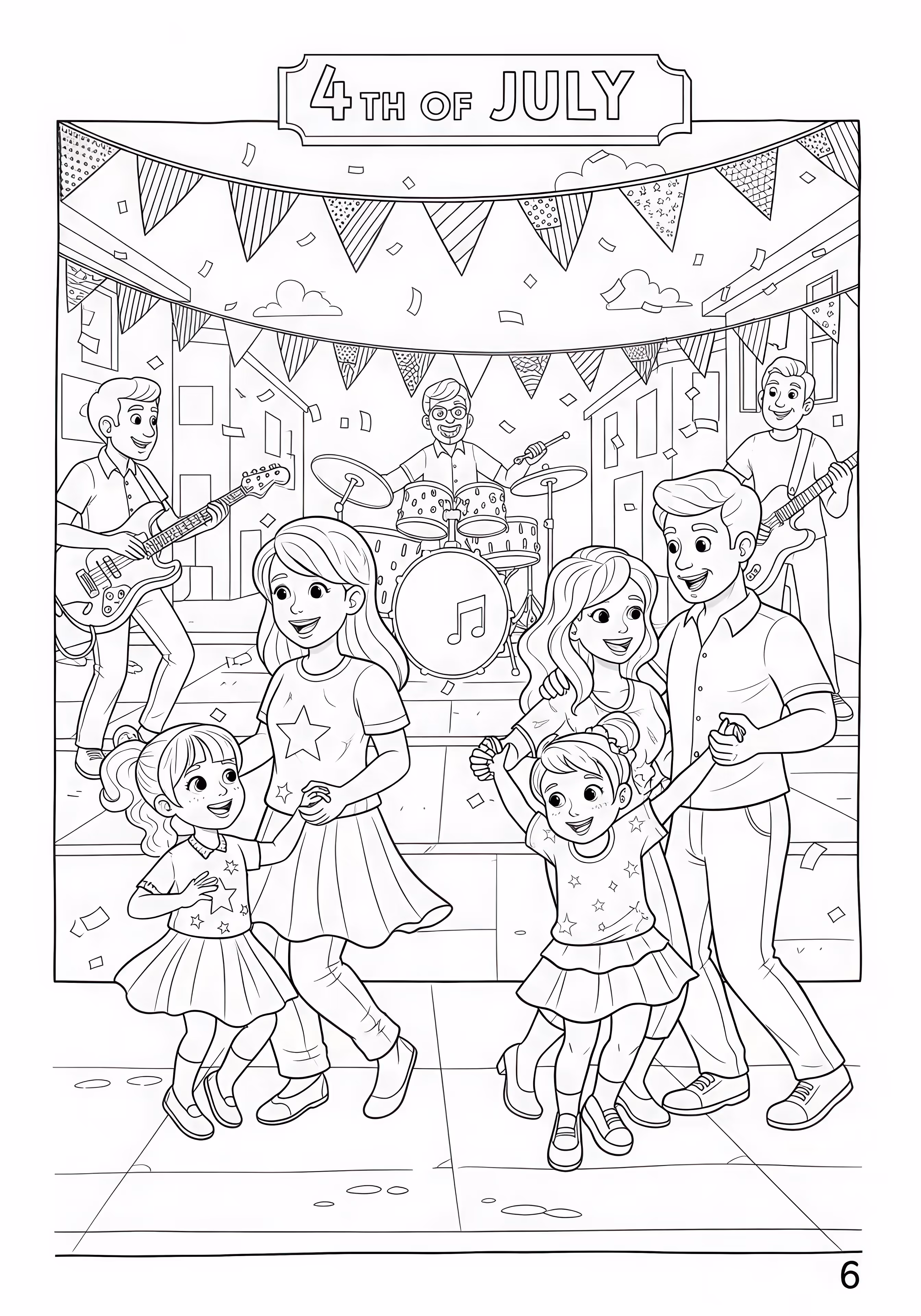 July Dance is a free printable coloring page designed for kids in cartoon style. This medium difficulty coloring sheet features medium outlines, perfect for young artists.