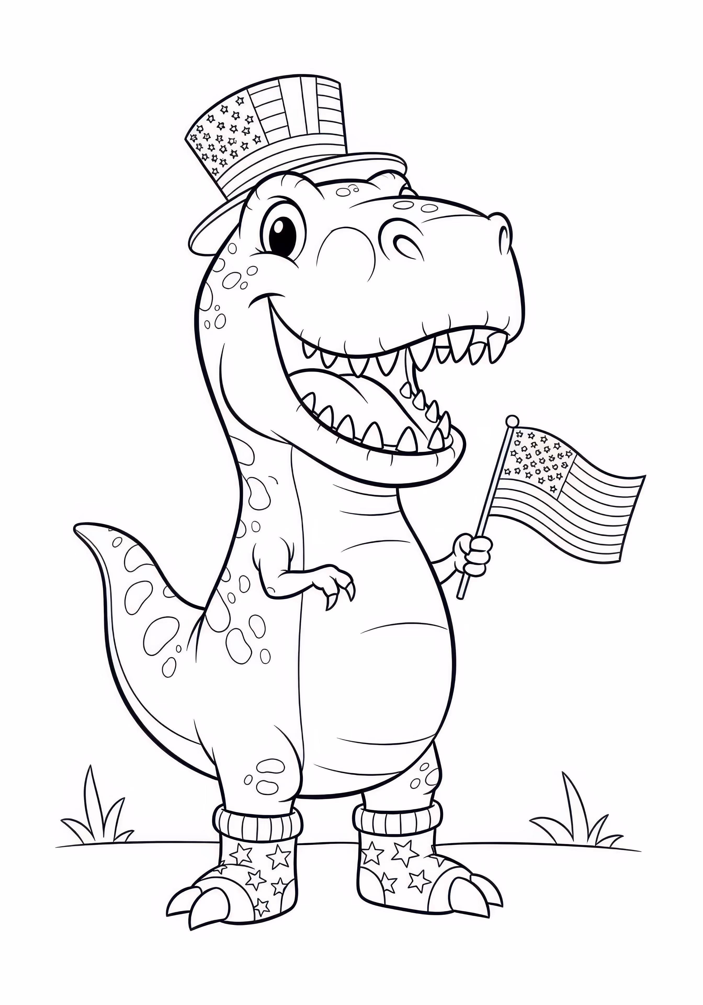 July Dinosaur is a free printable coloring page designed for kids in cartoon style. This medium difficulty coloring sheet features medium outlines, perfect for young artists.