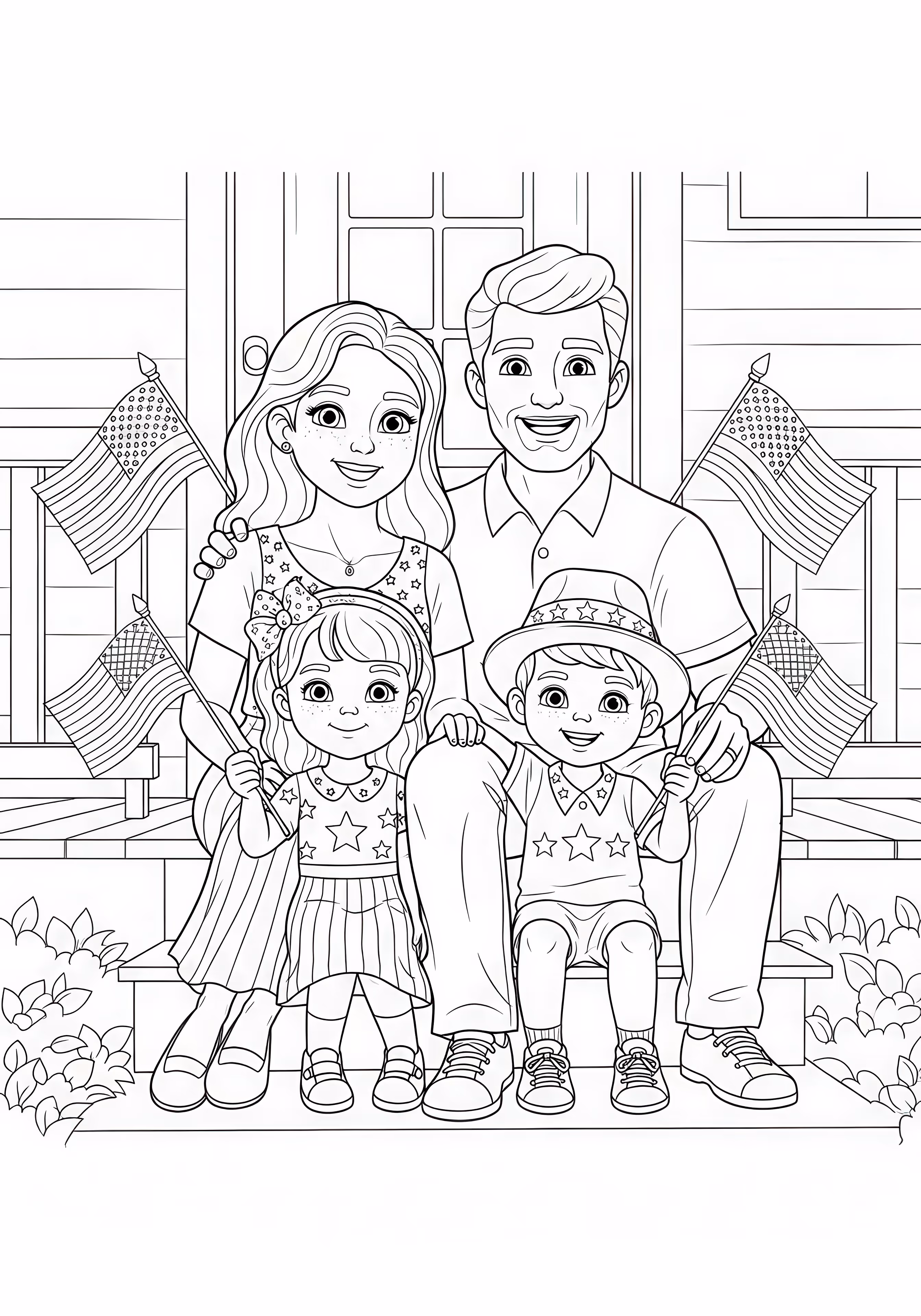 July Family is a free printable coloring page designed for kids in cartoon style. This medium difficulty coloring sheet features medium outlines, perfect for young artists.