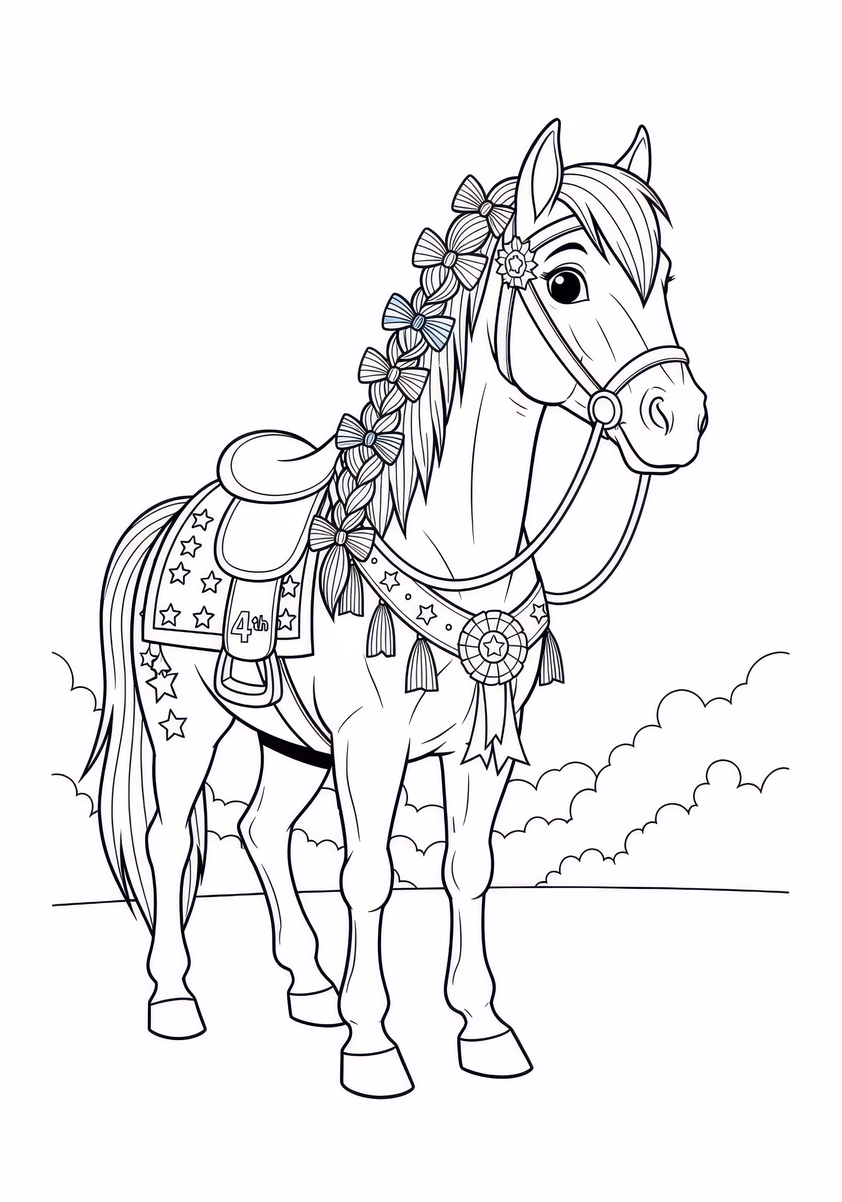 July Horse is a free printable coloring page designed for kids in cartoon style. This medium difficulty coloring sheet features medium outlines, perfect for young artists.