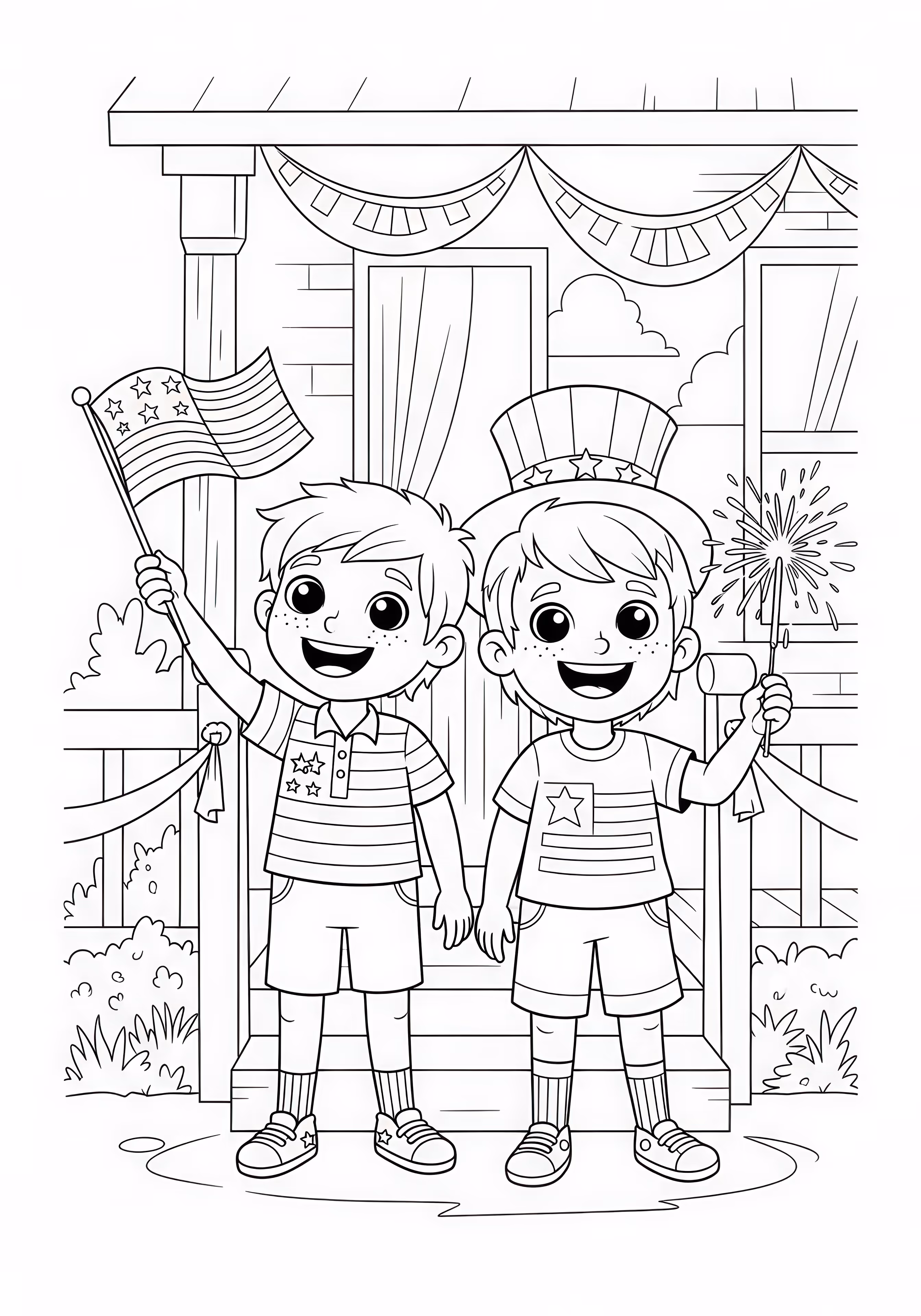 July Kids is a free printable coloring page designed for kids in cartoon style. This medium difficulty coloring sheet features medium outlines, perfect for young artists.