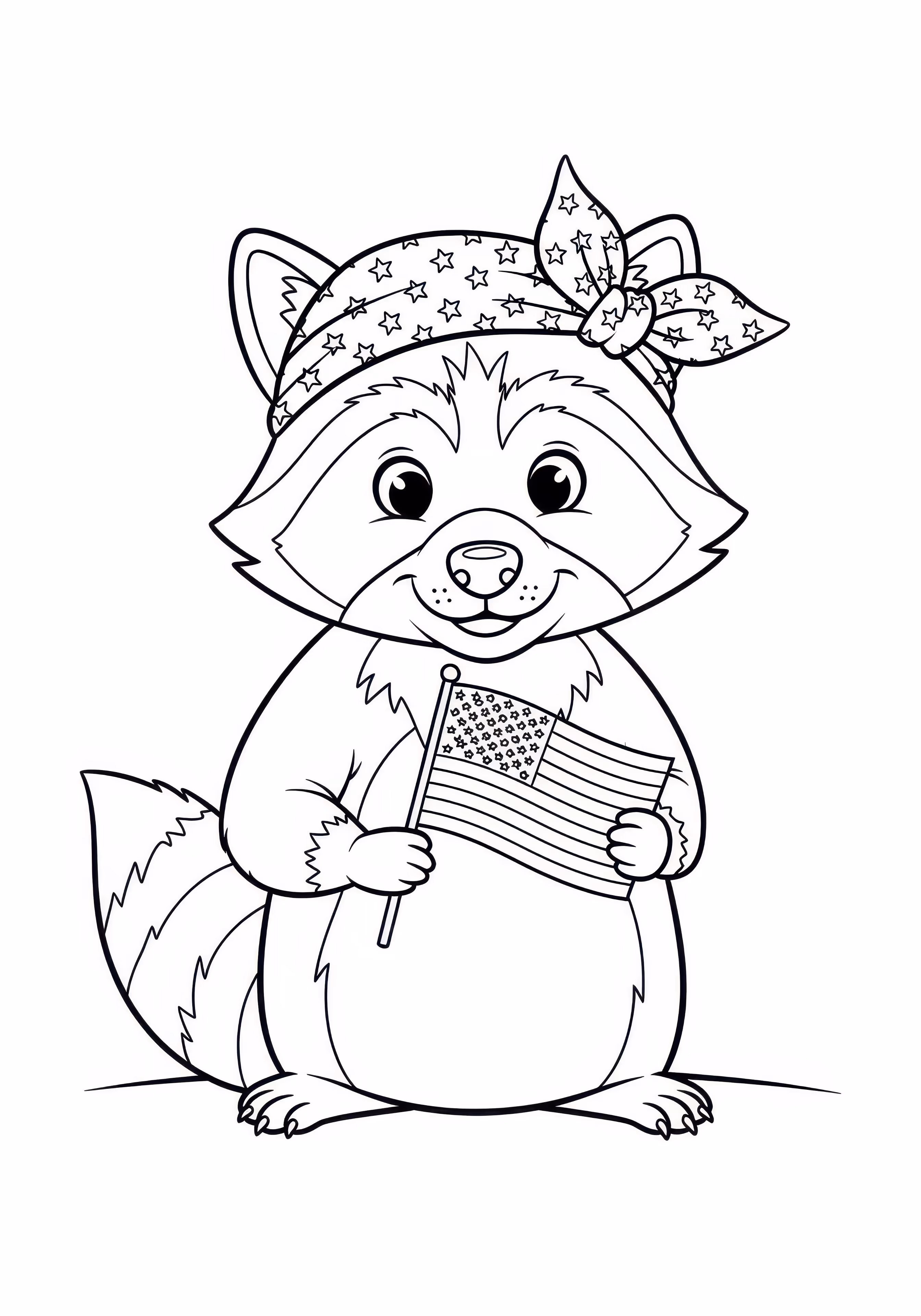 July Raccoon is a free printable coloring page designed for kids in cartoon style. This medium difficulty coloring sheet features medium outlines, perfect for young artists.
