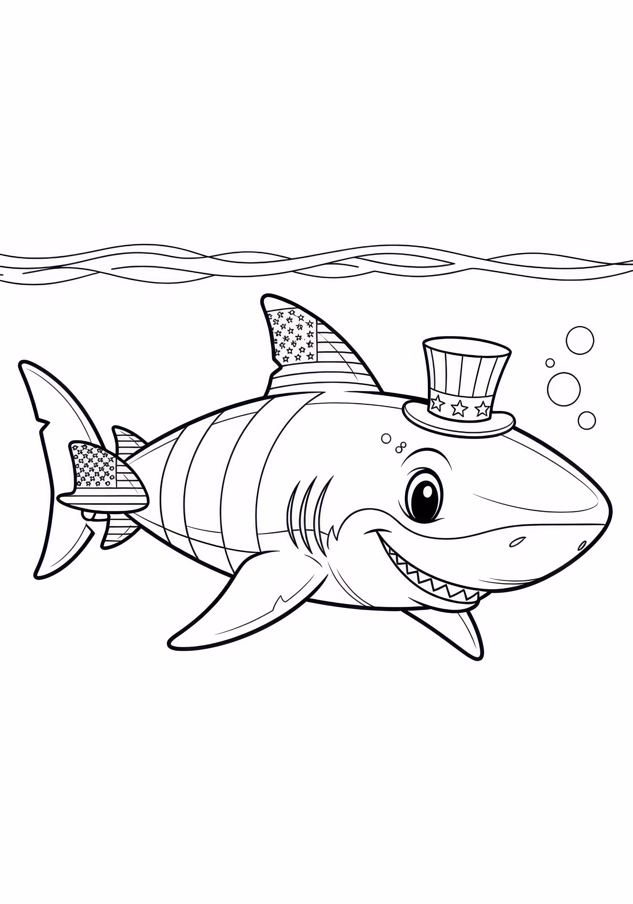 July Shark is a free printable coloring page designed for kids in cartoon style. This medium difficulty coloring sheet features medium outlines, perfect for young artists.