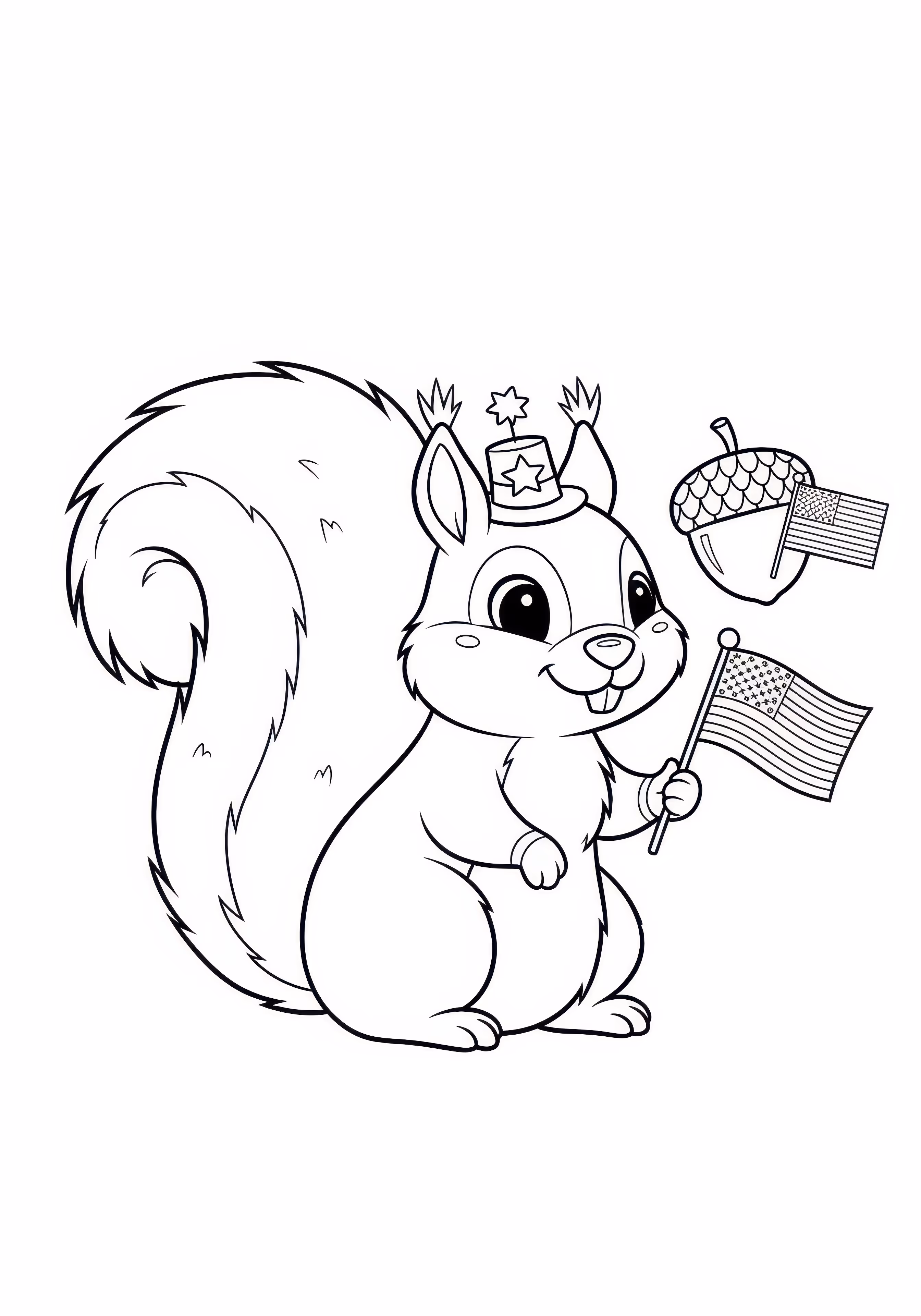 July Squirrel is a free printable coloring page designed for kids in cartoon style. This medium difficulty coloring sheet features medium outlines, perfect for young artists.