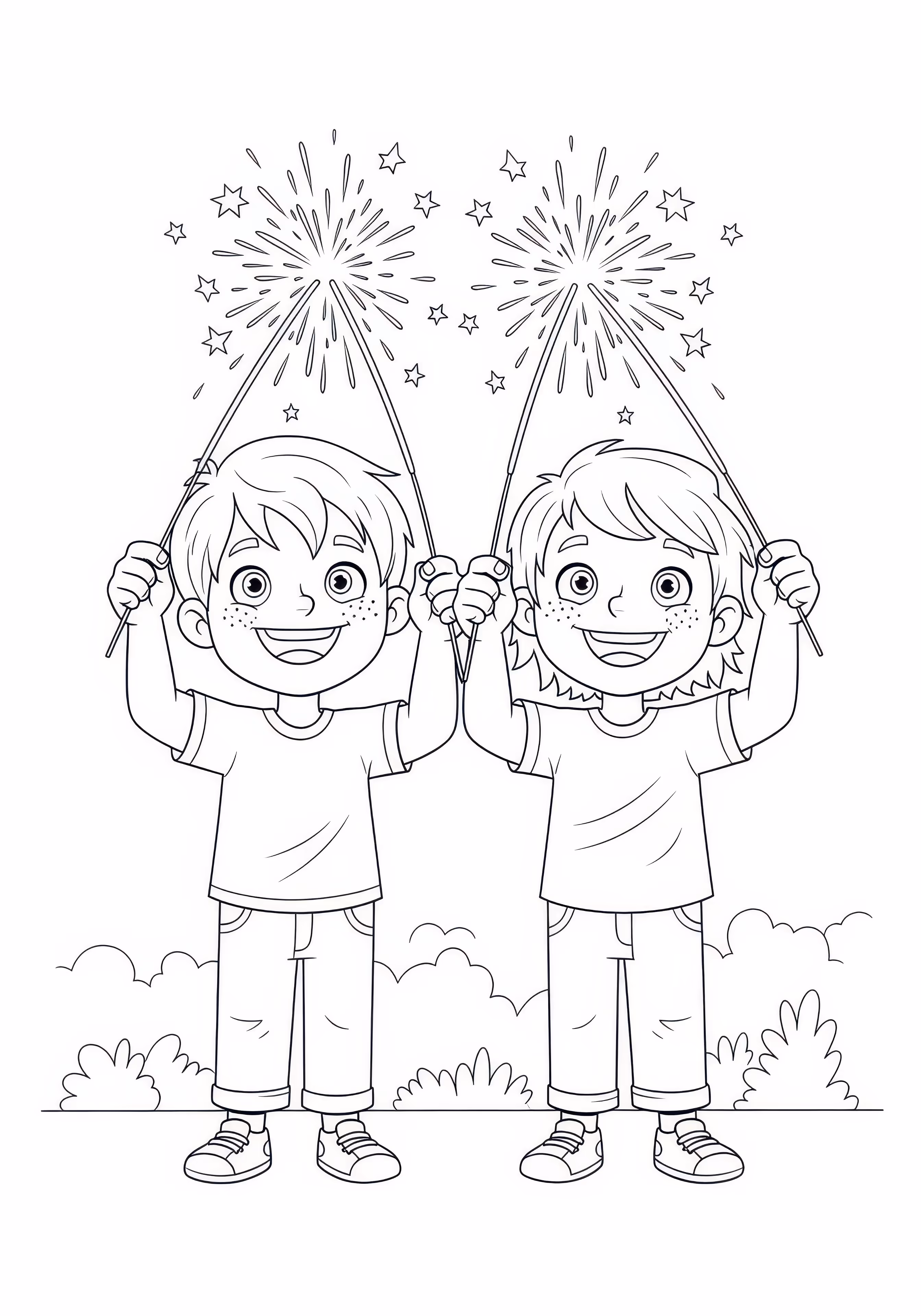 Kids Sparkler is a free printable coloring page designed for kids in cartoon style. This medium difficulty coloring sheet features medium outlines, perfect for young artists.