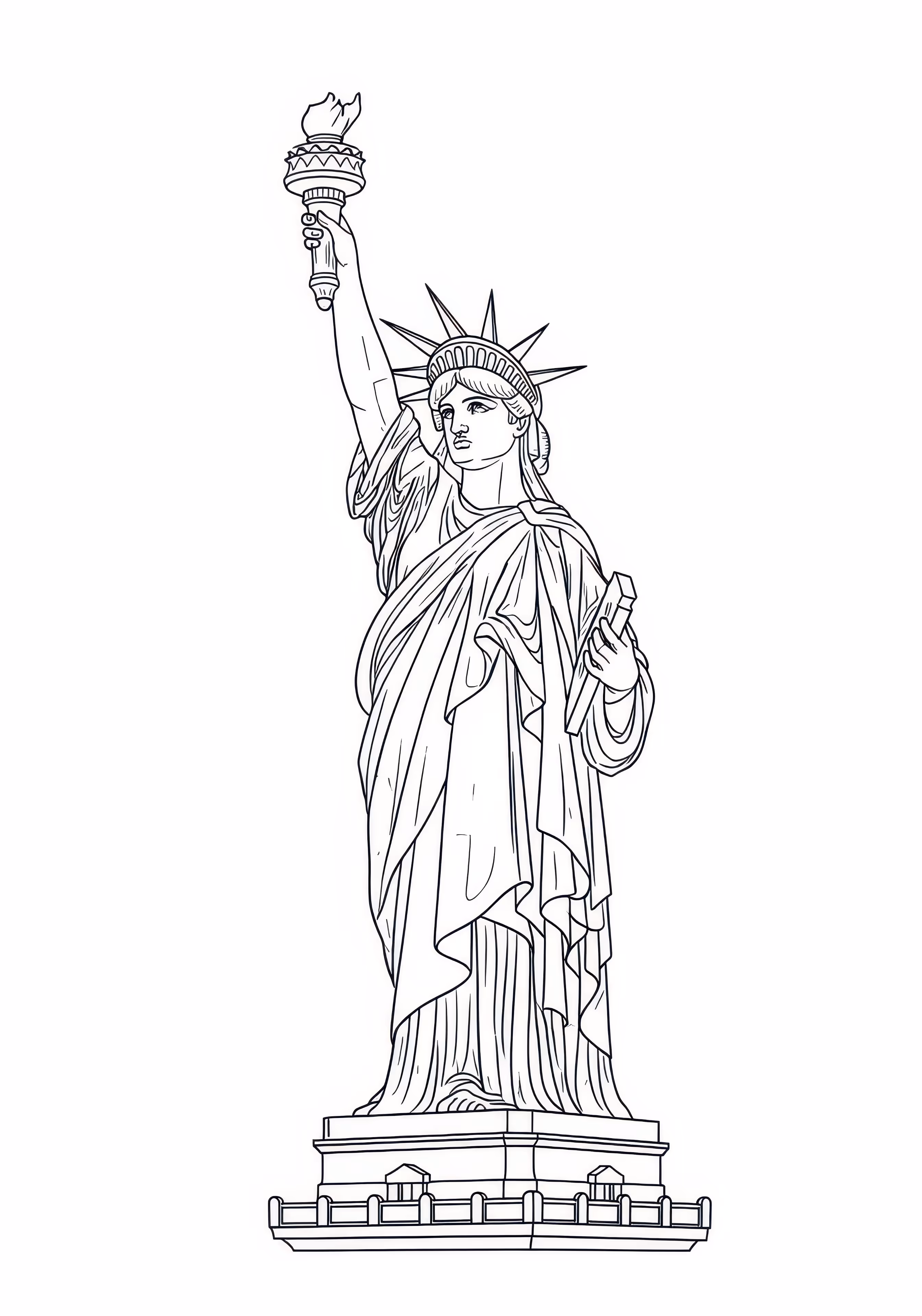 Lady Liberty is a free printable coloring page designed for kids in cartoon style. This medium difficulty coloring sheet features medium outlines, perfect for young artists.