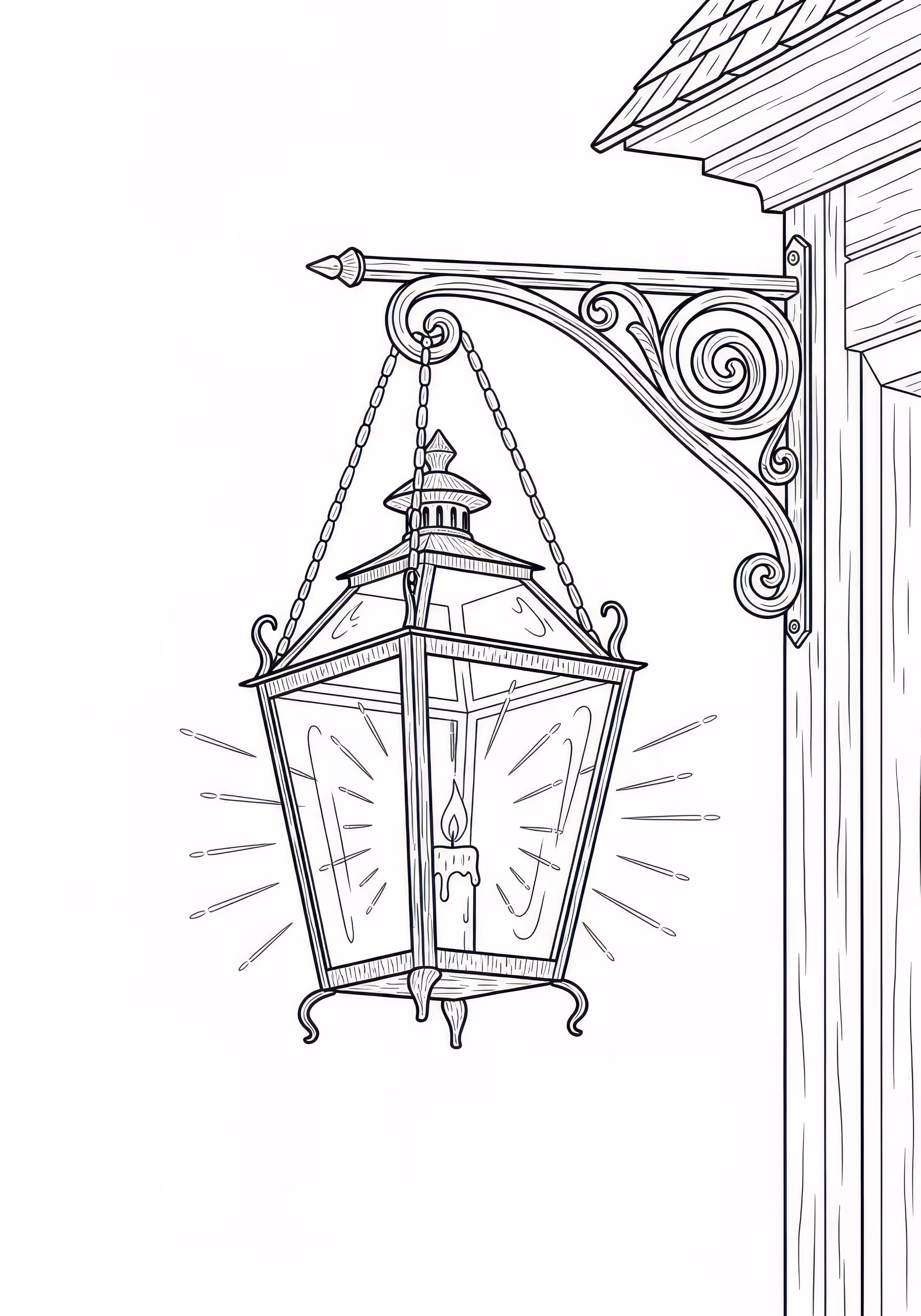 Lantern Light is a free printable coloring page designed for tweens in historical style. This hard difficulty coloring sheet features medium outlines, perfect for young artists.