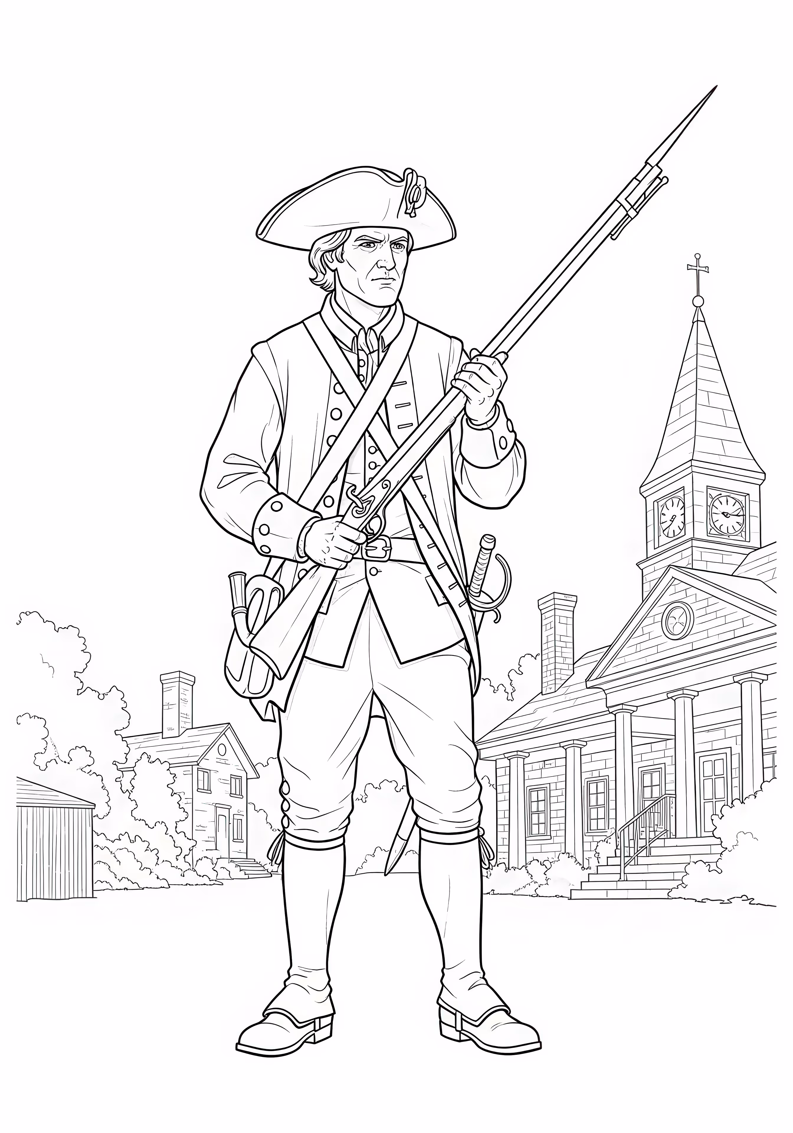 Minuteman is a free printable coloring page designed for tweens in historical style. This hard difficulty coloring sheet features medium outlines, perfect for young artists.