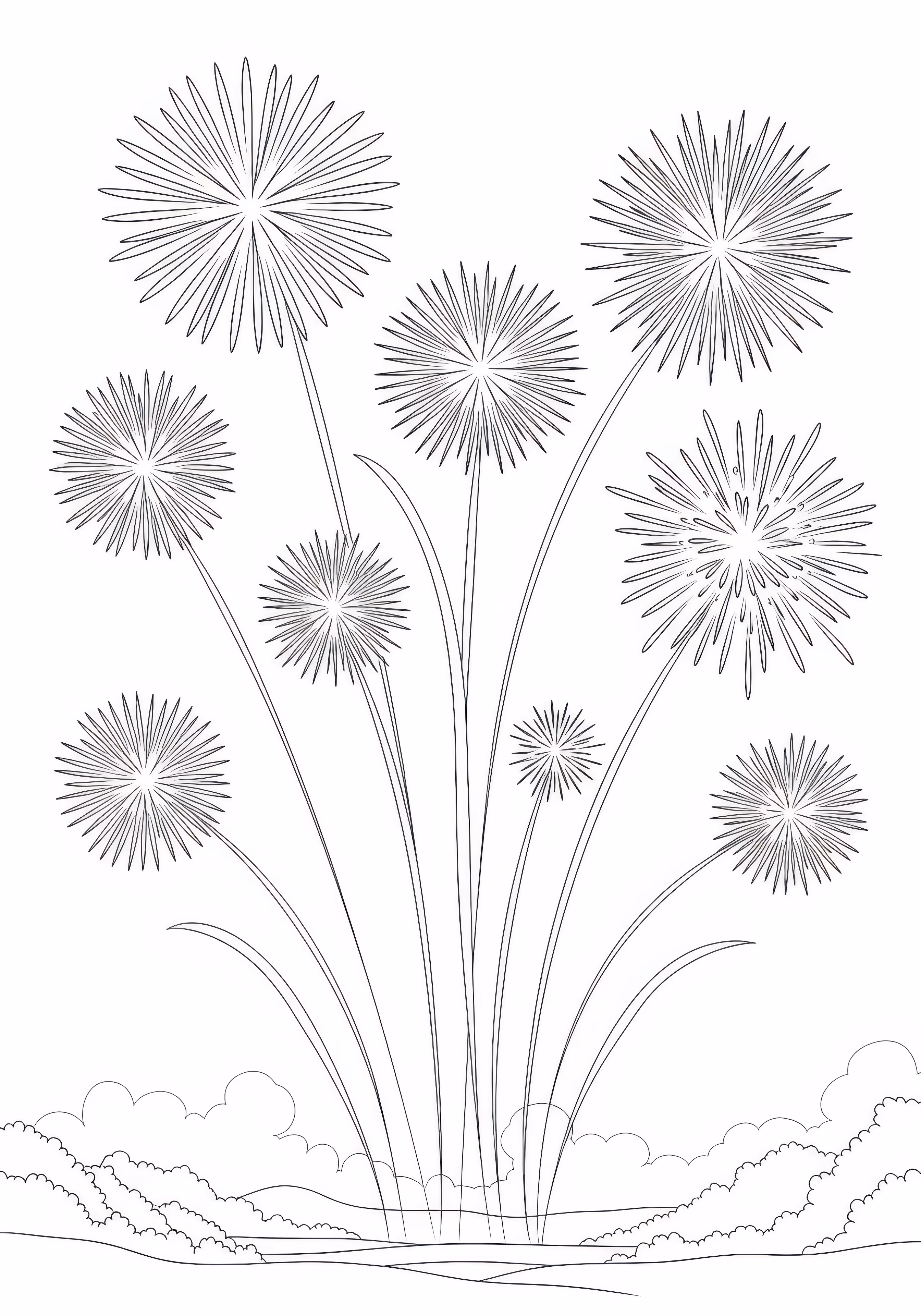 Multiple Fireworks is a free printable coloring page designed for kids in cartoon style. This medium difficulty coloring sheet features medium outlines, perfect for young artists.