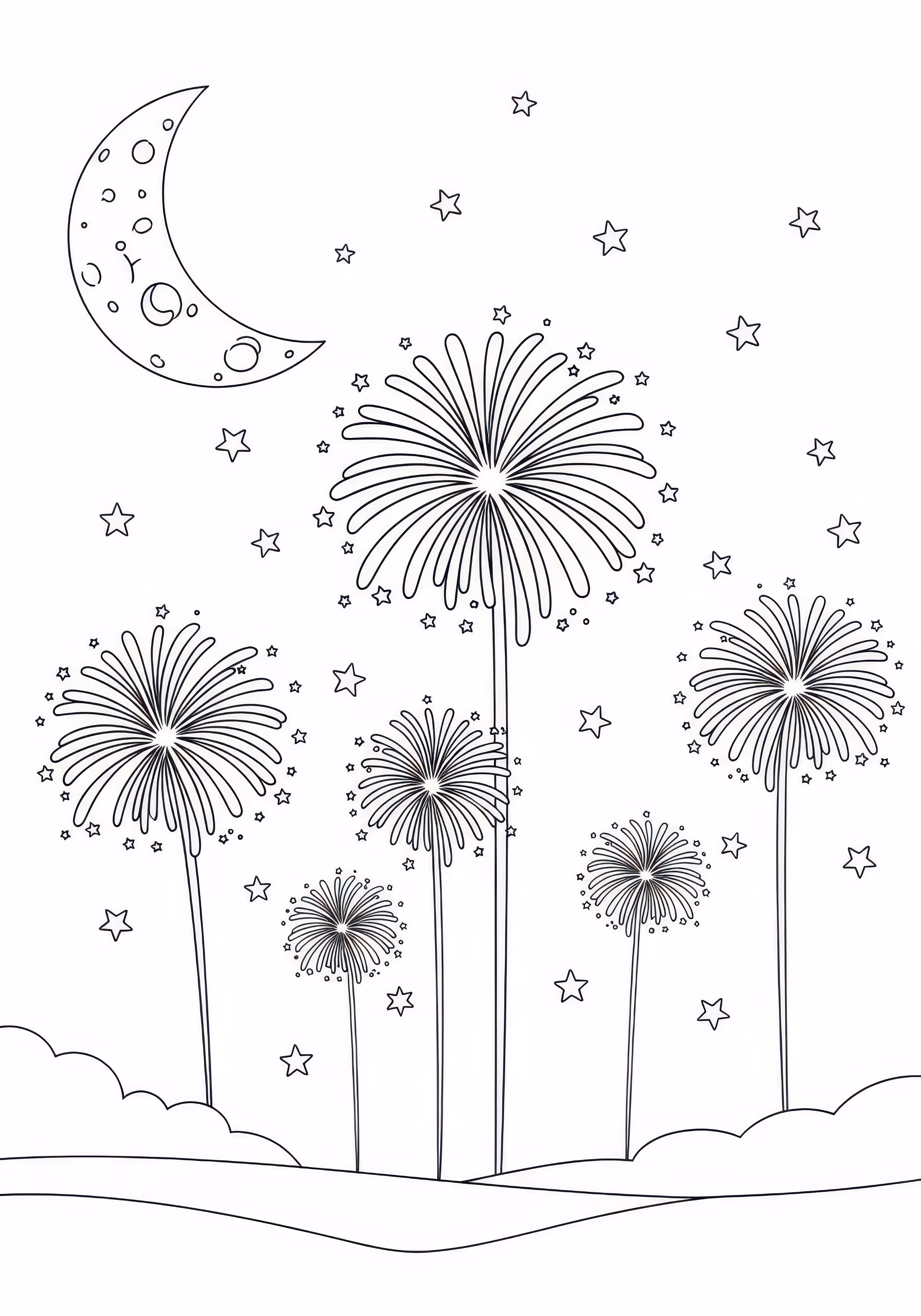 Night Sky is a free printable coloring page designed for kids in scene style. This medium difficulty coloring sheet features medium outlines, perfect for young artists.