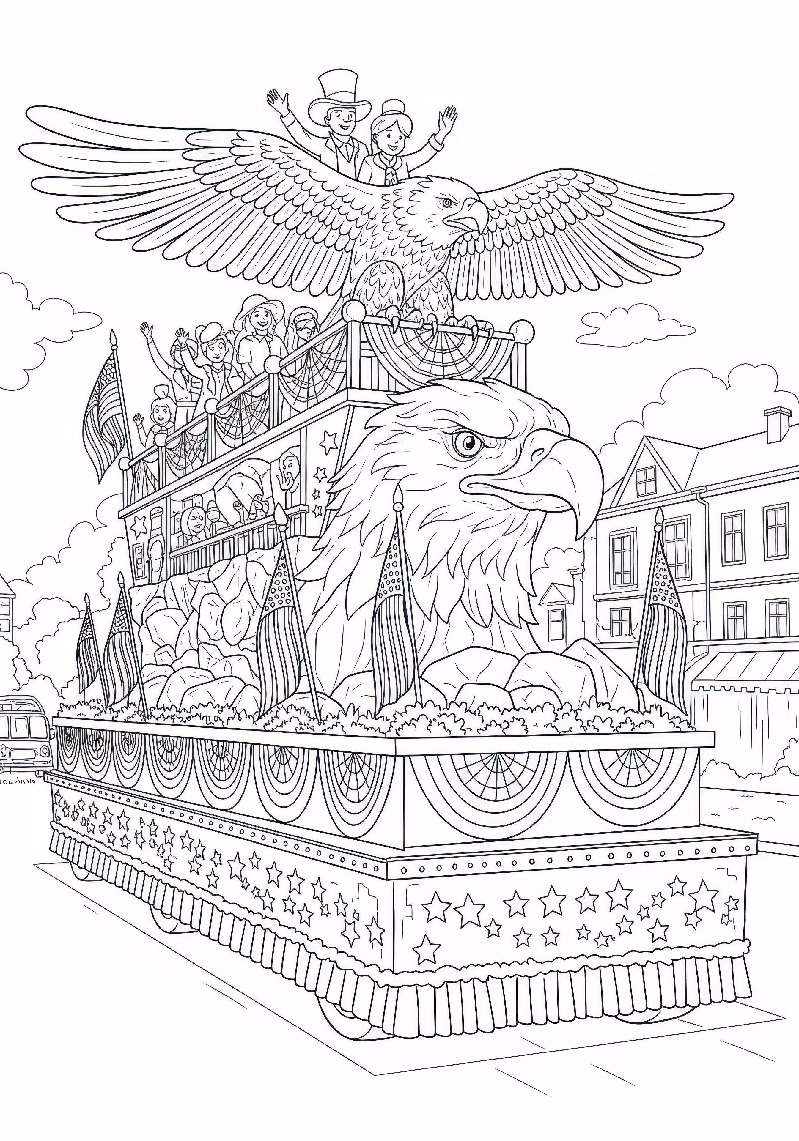 Parade Float is a free printable coloring page designed for kids in scene style. This medium difficulty coloring sheet features medium outlines, perfect for young artists.