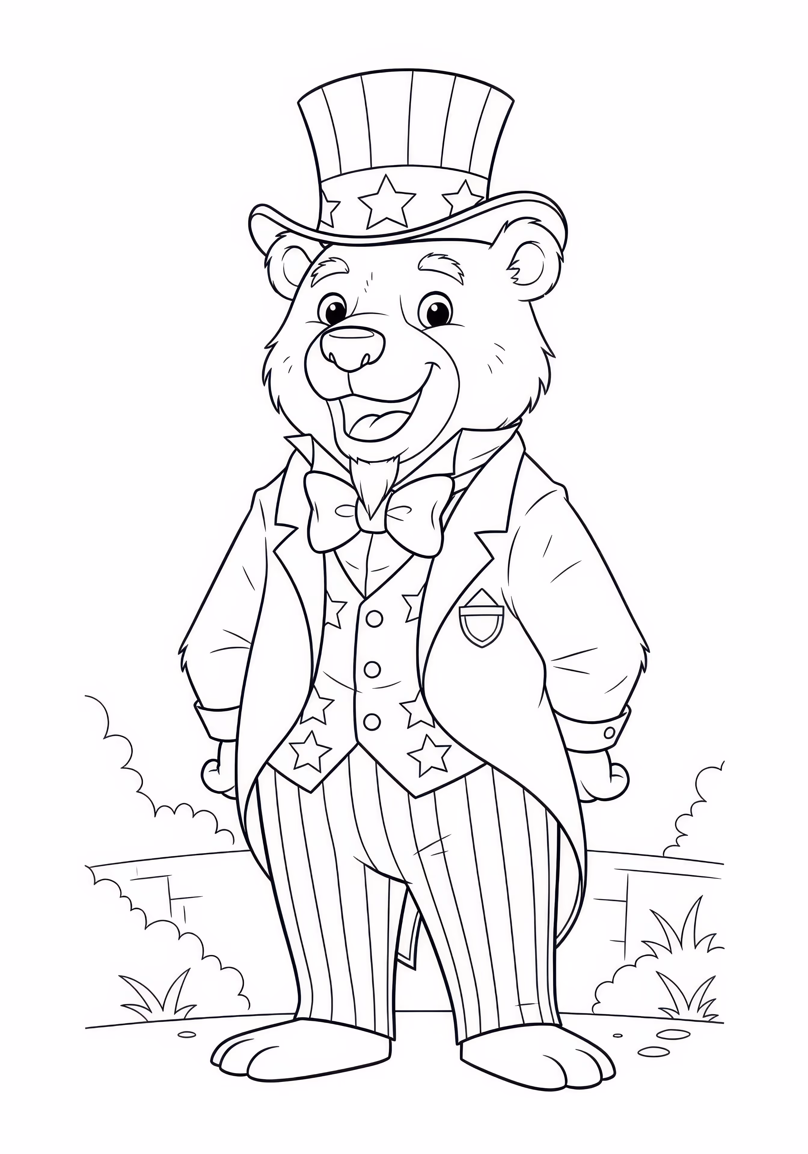 Patriotic Bear is a free printable coloring page designed for kids in cartoon style. This medium difficulty coloring sheet features medium outlines, perfect for young artists.