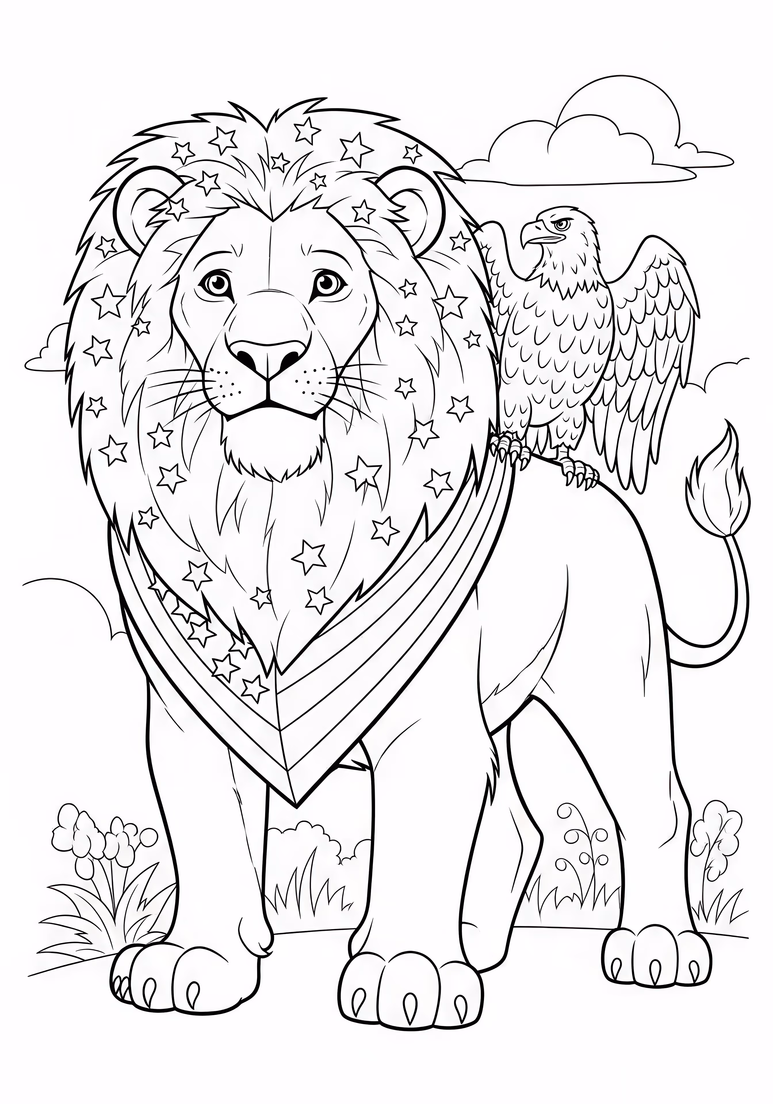 Patriotic Lion is a free printable coloring page designed for kids in cartoon style. This medium difficulty coloring sheet features medium outlines, perfect for young artists.