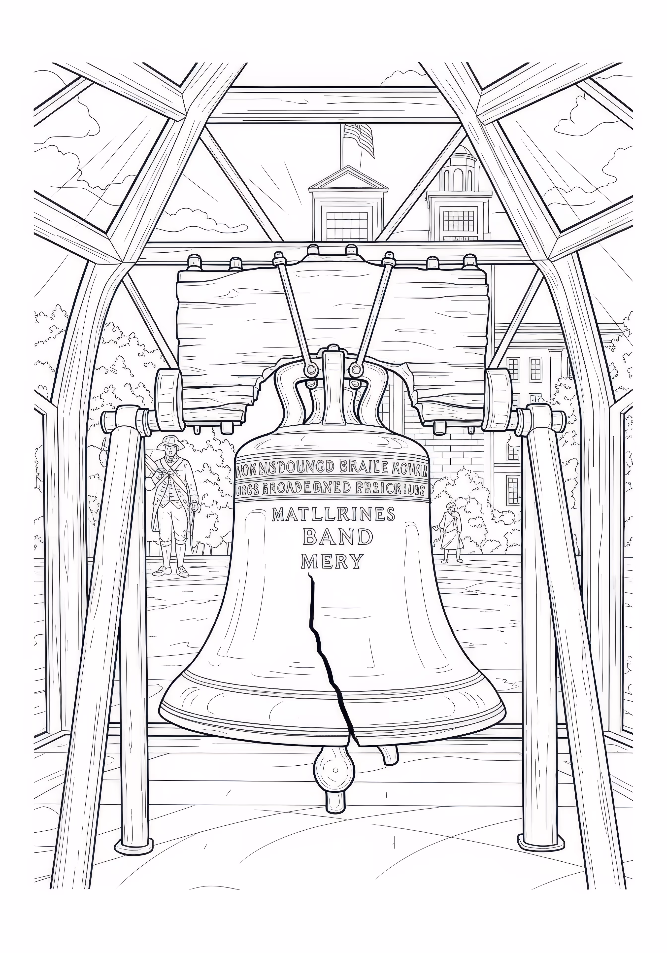 Philadelphia Bell is a free printable coloring page designed for tweens in historical style. This hard difficulty coloring sheet features medium outlines, perfect for young artists.
