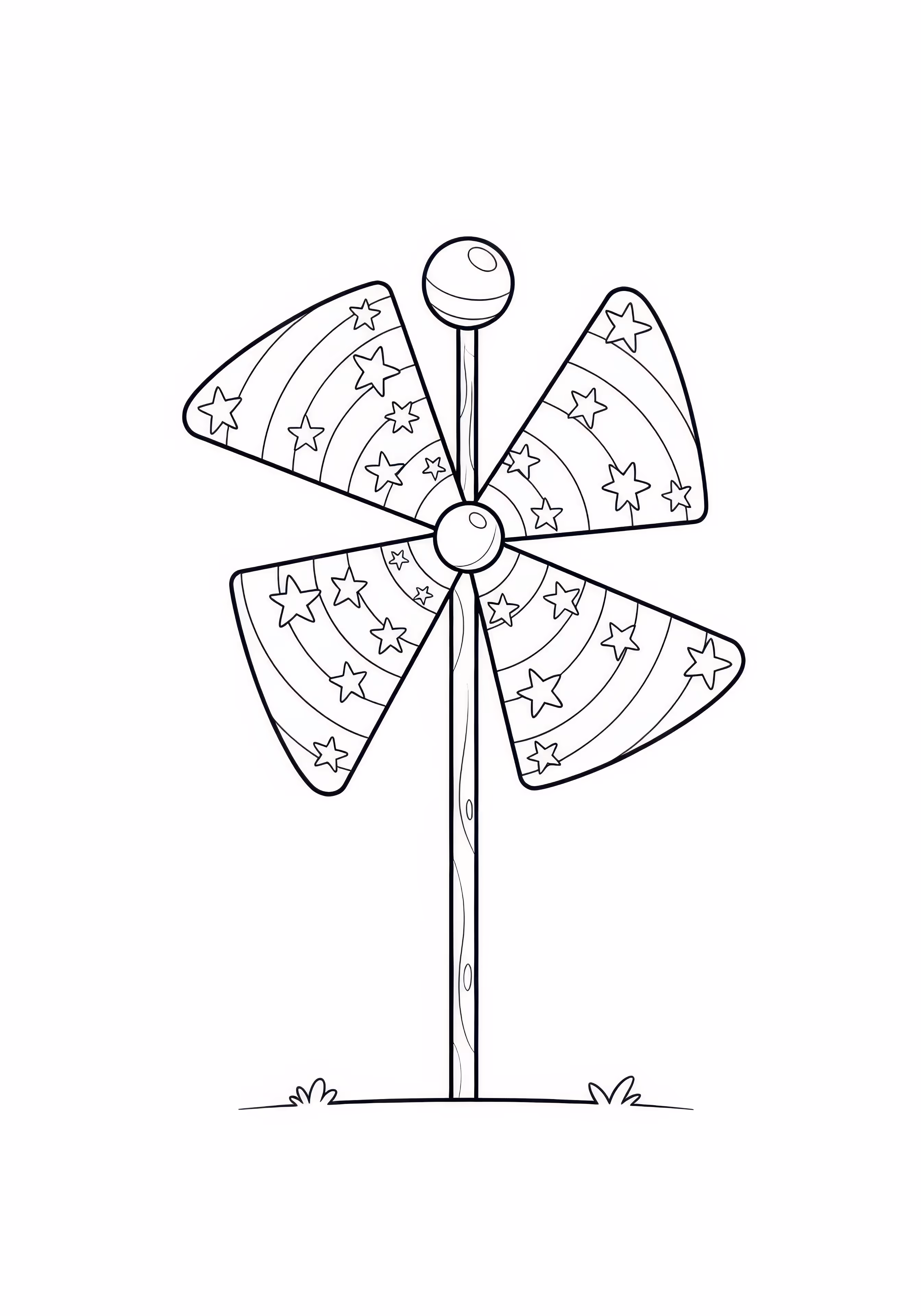 Pinwheel Toy is a free printable coloring page designed for kids in cartoon style. This medium difficulty coloring sheet features medium outlines, perfect for young artists.